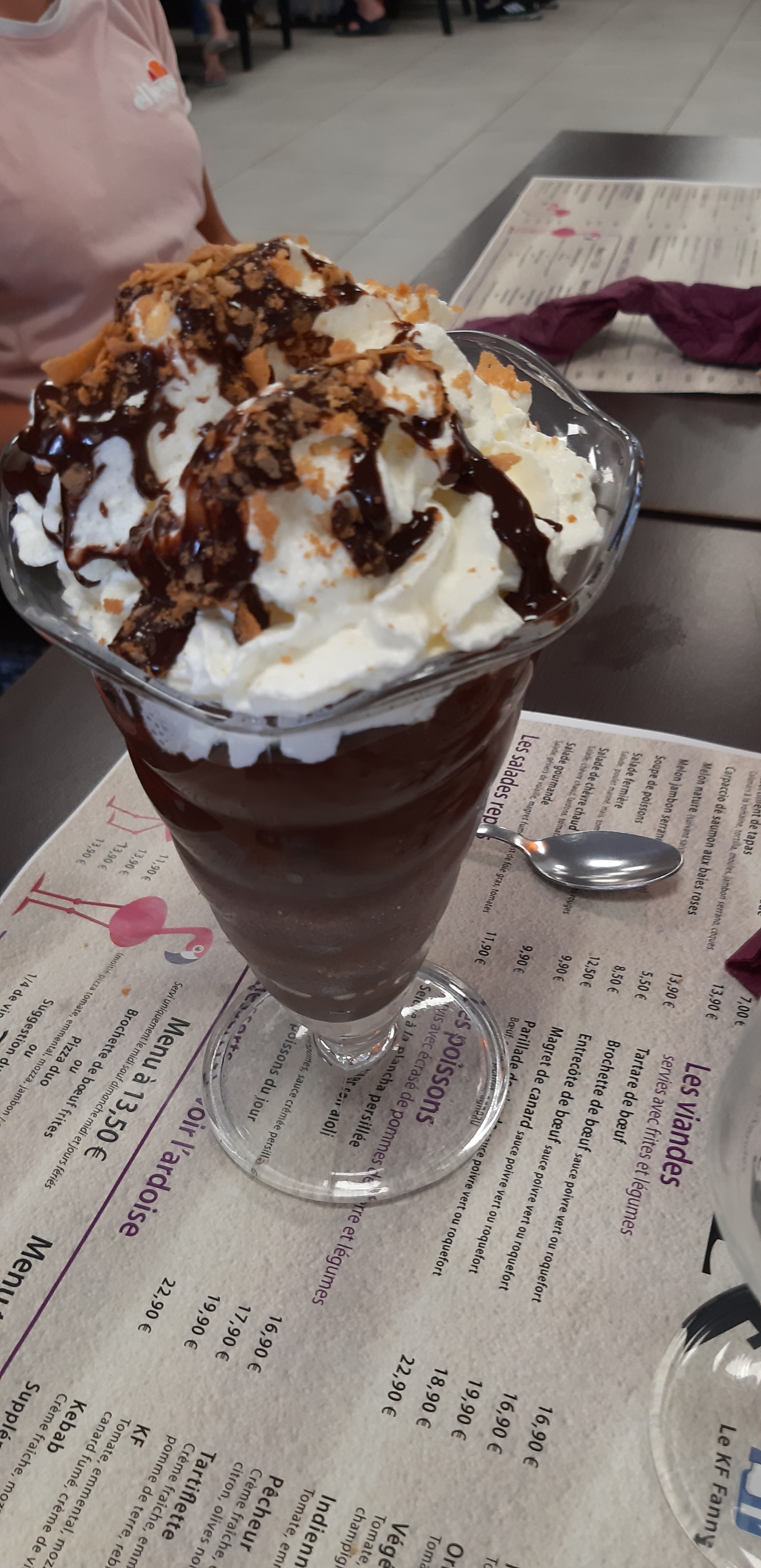 Super moment en famille! Service rapide pour ceux qui le souhaite, plats et desserts copieux profiterolles géant (énormes)!! Merci pour cette soirée du 14 juillet réussie : feux d'artifices et concert à table!!! Emplacement parfait😉