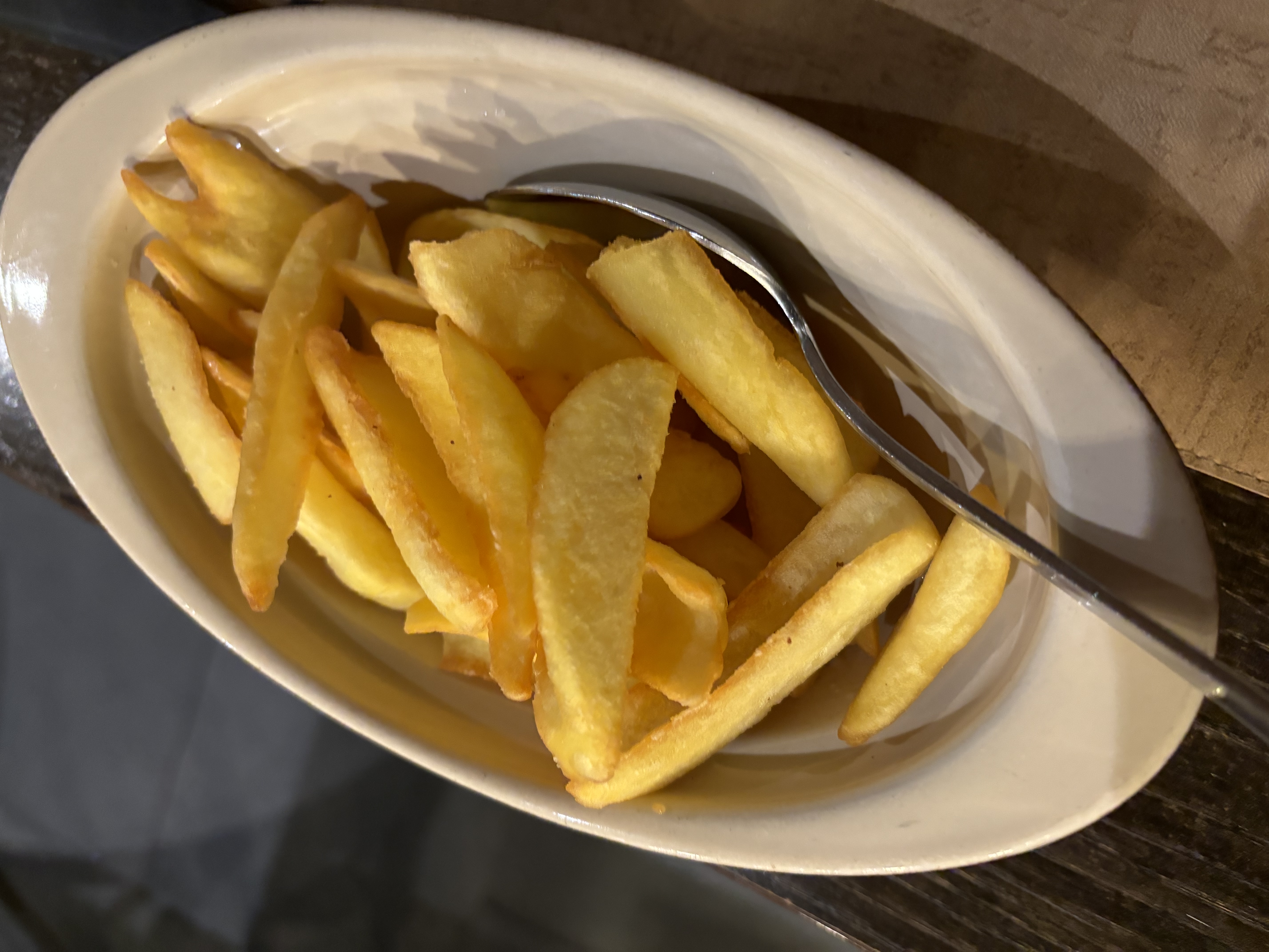 En voyant les bonnes appréciations on s’attendait à manger de la qualité, malheureusement un peu de frais vient se mélanger à beaucoup trop de nourriture industrielle… Frites surgelées, champignons en boîte… Très décevant