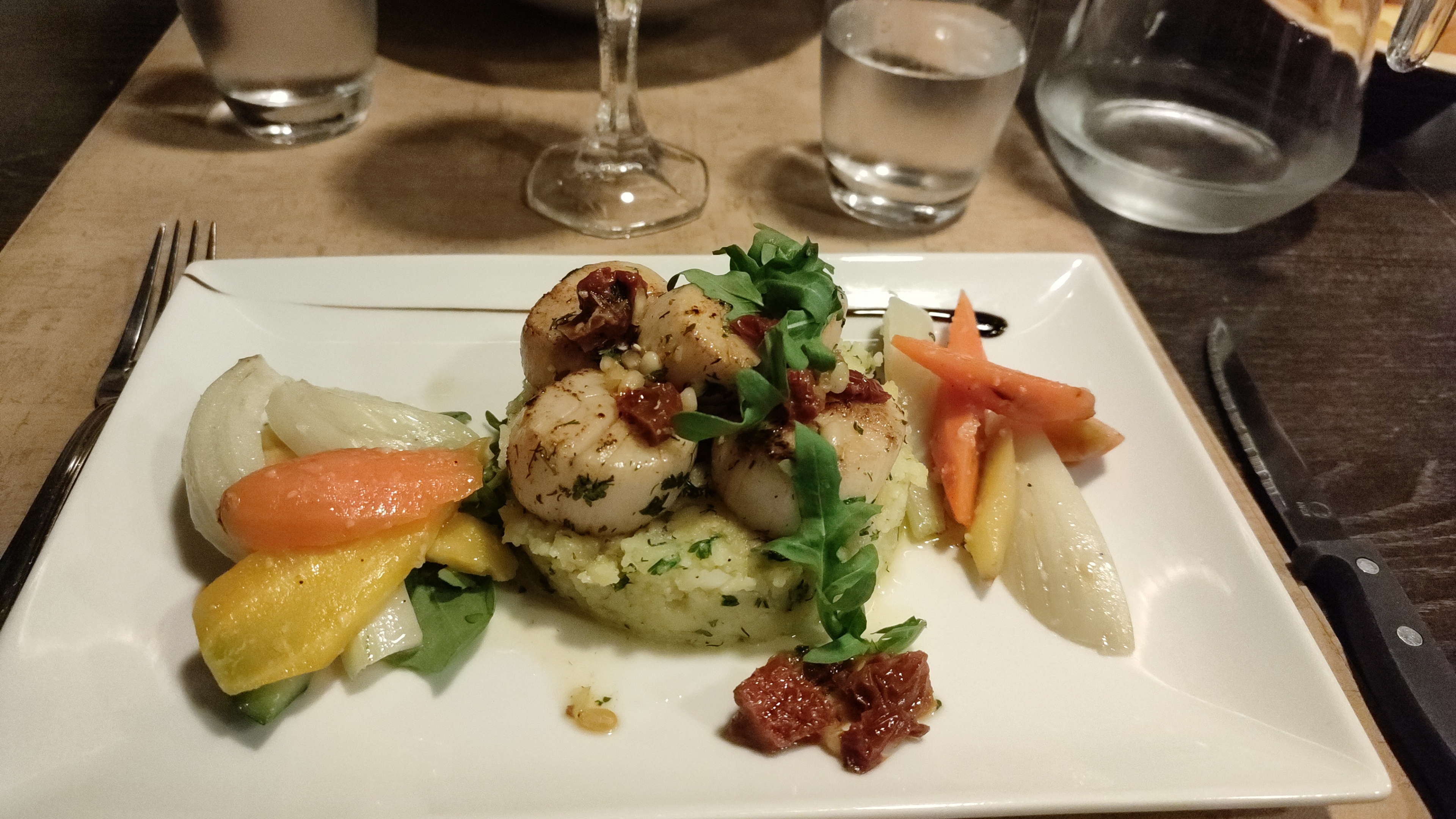 Très belle expérience culinaire, je me suis laissée tenter par l'une des suggestions : St Jacques sur écrasé de pomme de terre : un régal, cuisson parfaite. L'accueil et le service étaient également au top 👍