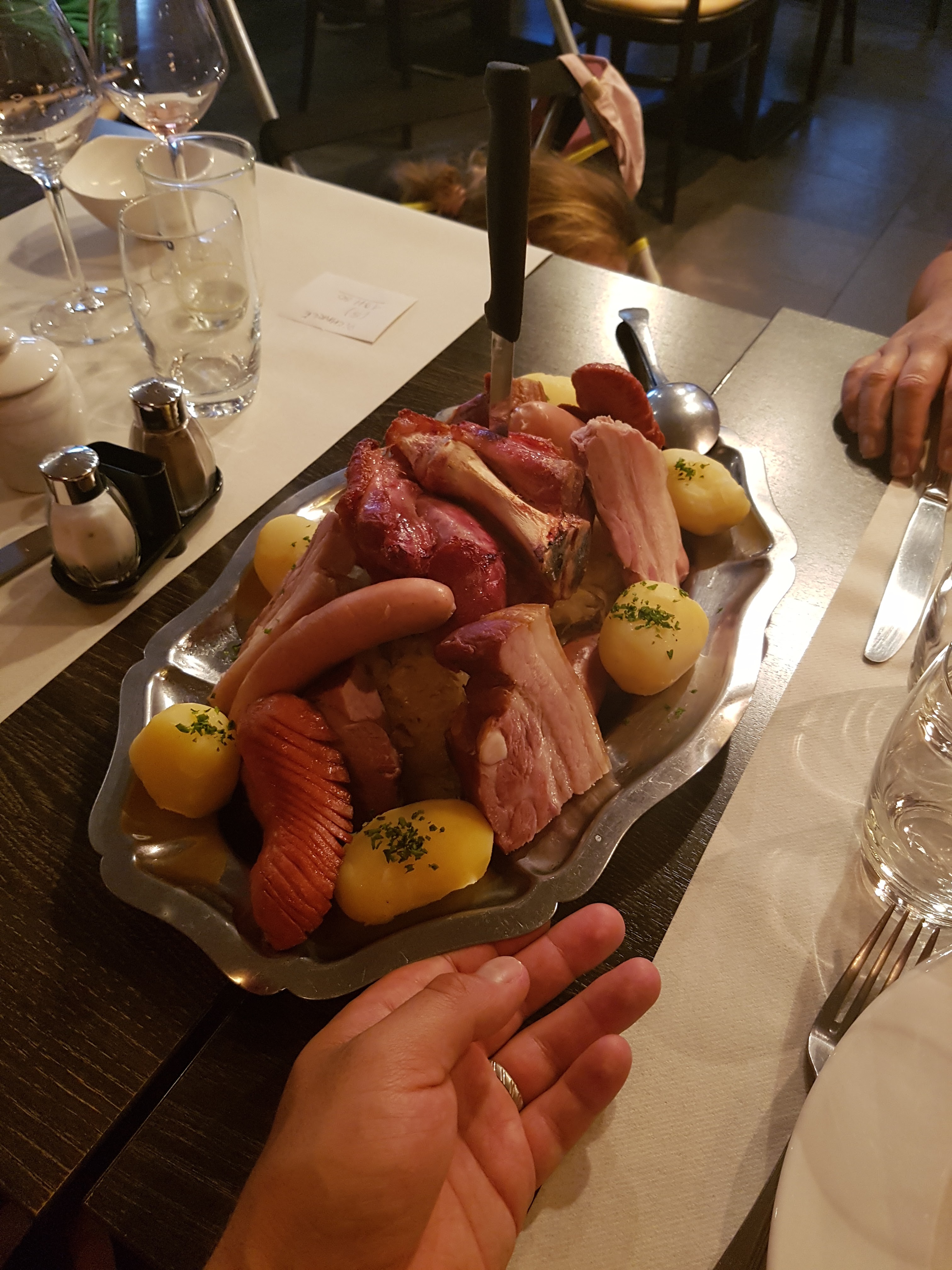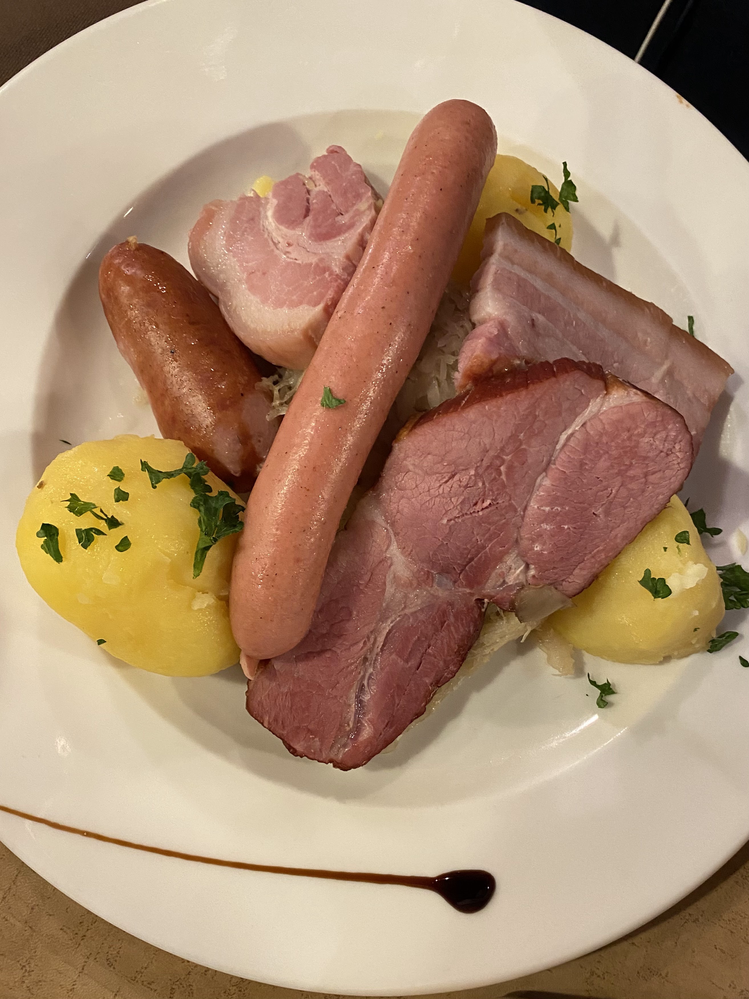 Délicieuse cuisine alsacienne. Heureusement, j'ai beaucoup trop mangé. J'espère revenir à Strasbourg le plus tôt possible pour pouvoir revenir dîner.