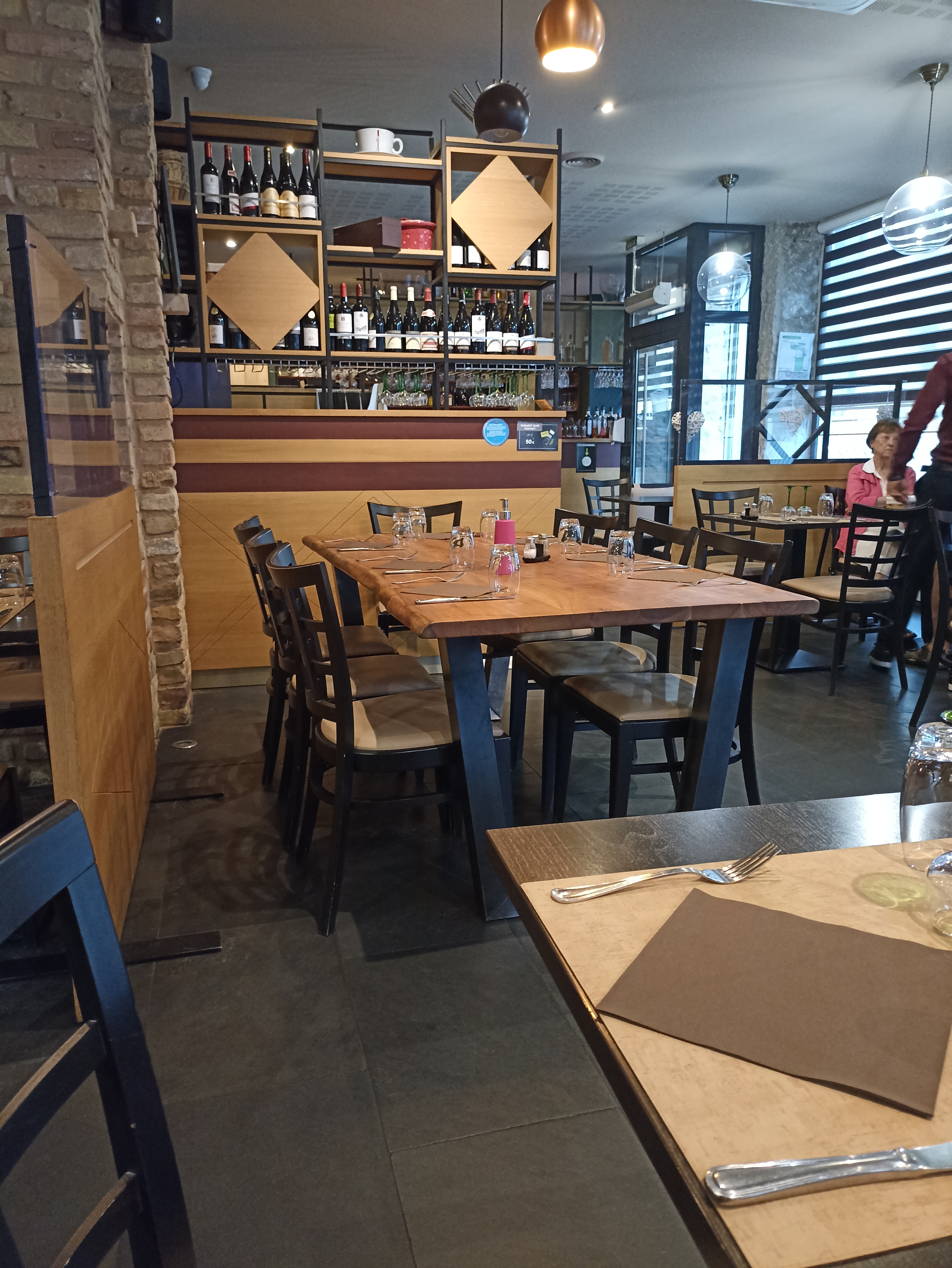 Sans réservation, nous saluions toujours de manière amicale et accueillante. Comme aucune table n'était disponible, nous avons attendu au bar, où le personnel amical a essayé d'établir la communication (ce qui est parfois un peu plus difficile en France si on ne parle pas la langue) et nous avons eu trois vins différents à déguster, afin que nous puissions pourrait faire un grand choix. Les plats étaient des spécialités locales et nous avons vraiment apprécié notre repas. Malheureusement, il ne restait plus de place pour le dessert (qui aurait été excellent, nous en sommes sûrs !) et le personnel était très sympathique et serviable. Menu disponible dans différentes langues et serveuse parlant allemand. Merci pour une excellente soirée.