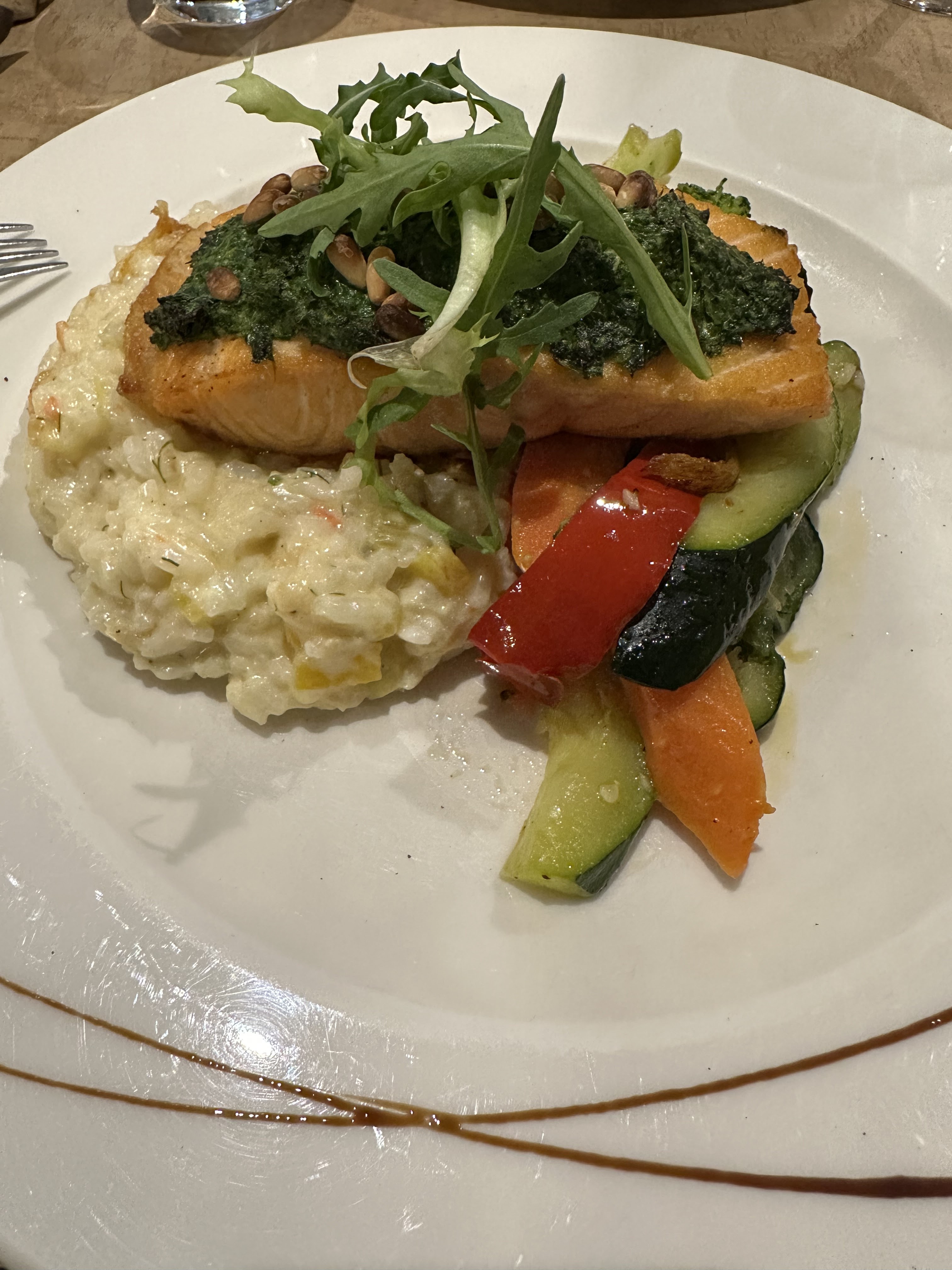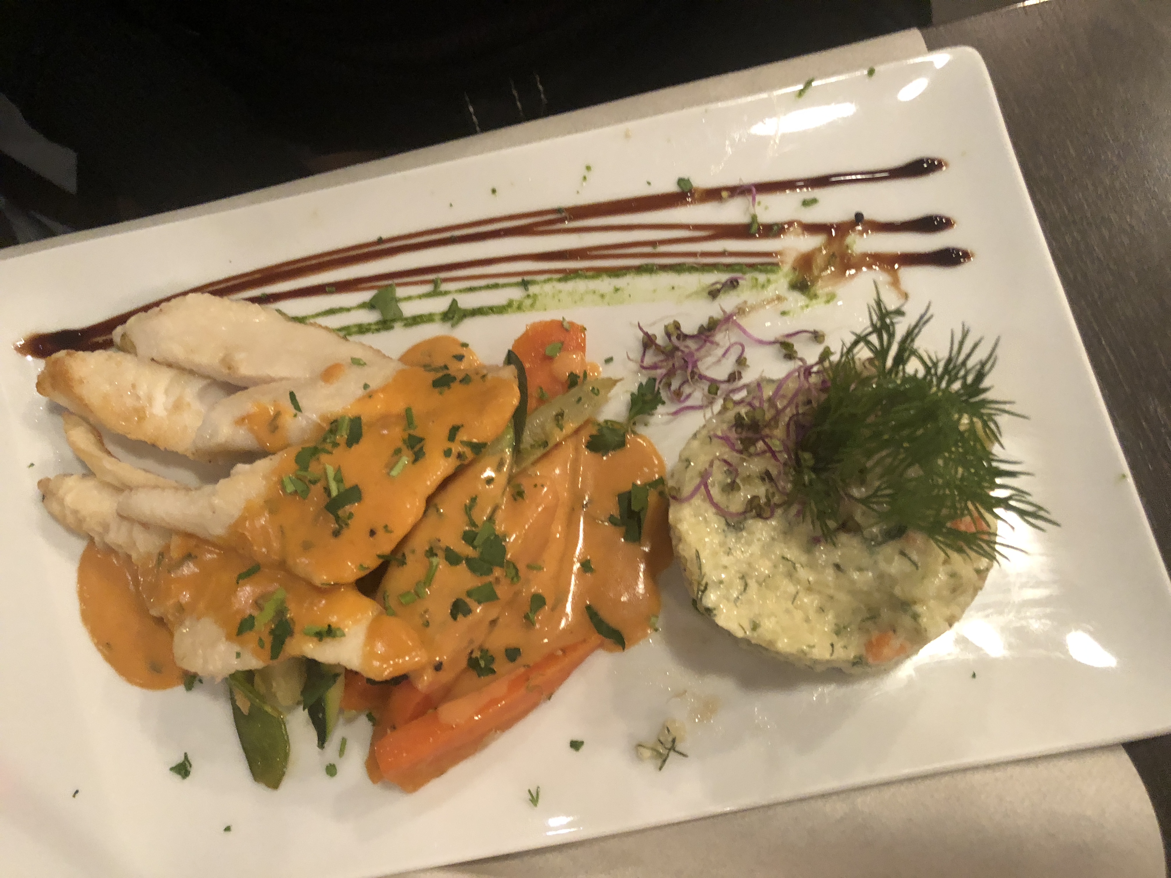 C'était ma deuxième visite dans ce restaurant cette semaine. Lors de ma première visite, j'ai choisi le plat du menu du jour qui était délicieux. Ce soir, j'ai sélectionné un plat dans le menu lui-même. La viande était parfaitement cuite selon ma demande. La nourriture était fraîche, joliment assaisonnée et bien présentée. Le personnel était très sympathique. J'ai dîné dans de nombreux pays et je dîne à la maison chaque semaine. Cela a été l’un de mes repas les plus mémorables depuis longtemps. Merci