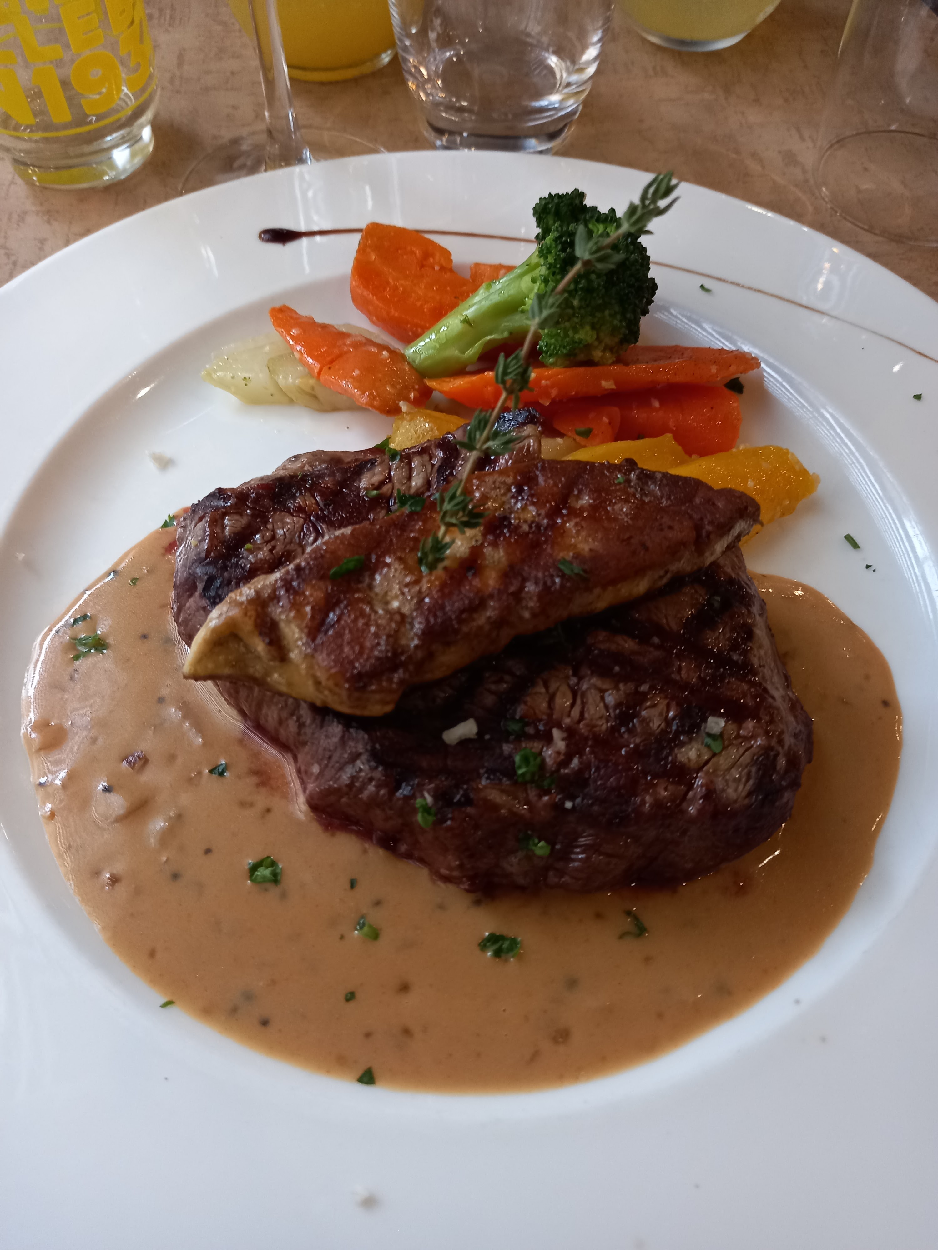 On s'est régalés : la viande super tendre et goûteuse, champagne et vin top, et tiramisu délicieux. Le seul point : frites surgelées mais on en a quand même redemandé une assiette donc... Rien à redire, c'était parfait.