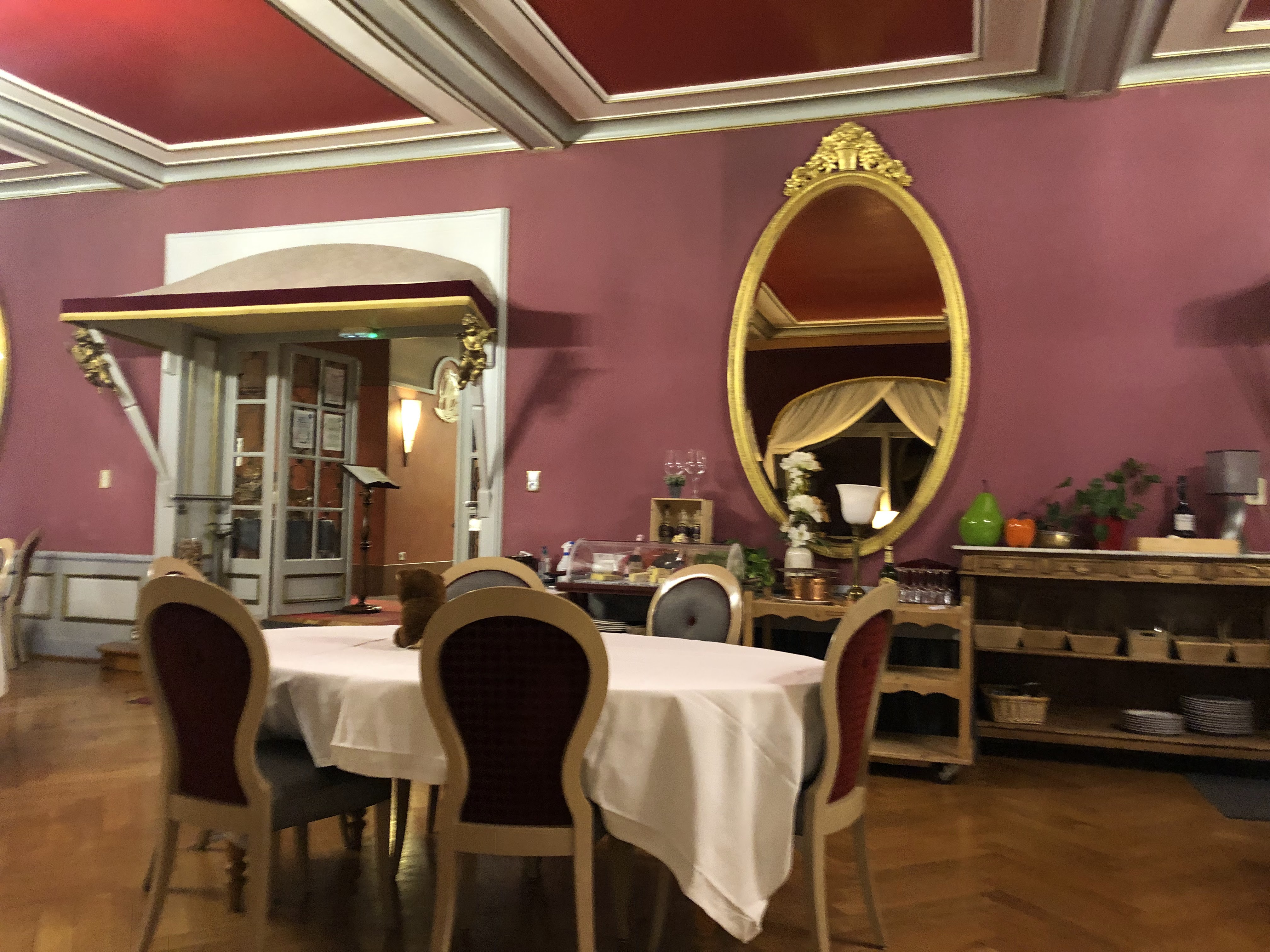 Déçue, je m'attendais franchement à mieux. La chambre ne vaut pas du tout son prix, toute petite et en plus le radiateur qui faisait un bruit affreux, obligé de la couper sinon on ne dormait pas de la nuit. En ce qui concerne le restaurant, bon malgré le vin rouge pas à température ambiante beaucoup trop frais. Bon choix au petit déjeuné mais alors le café médiocre, comme si il avait était réchauffer plusieurs fois. Sinon le cadre est beau...