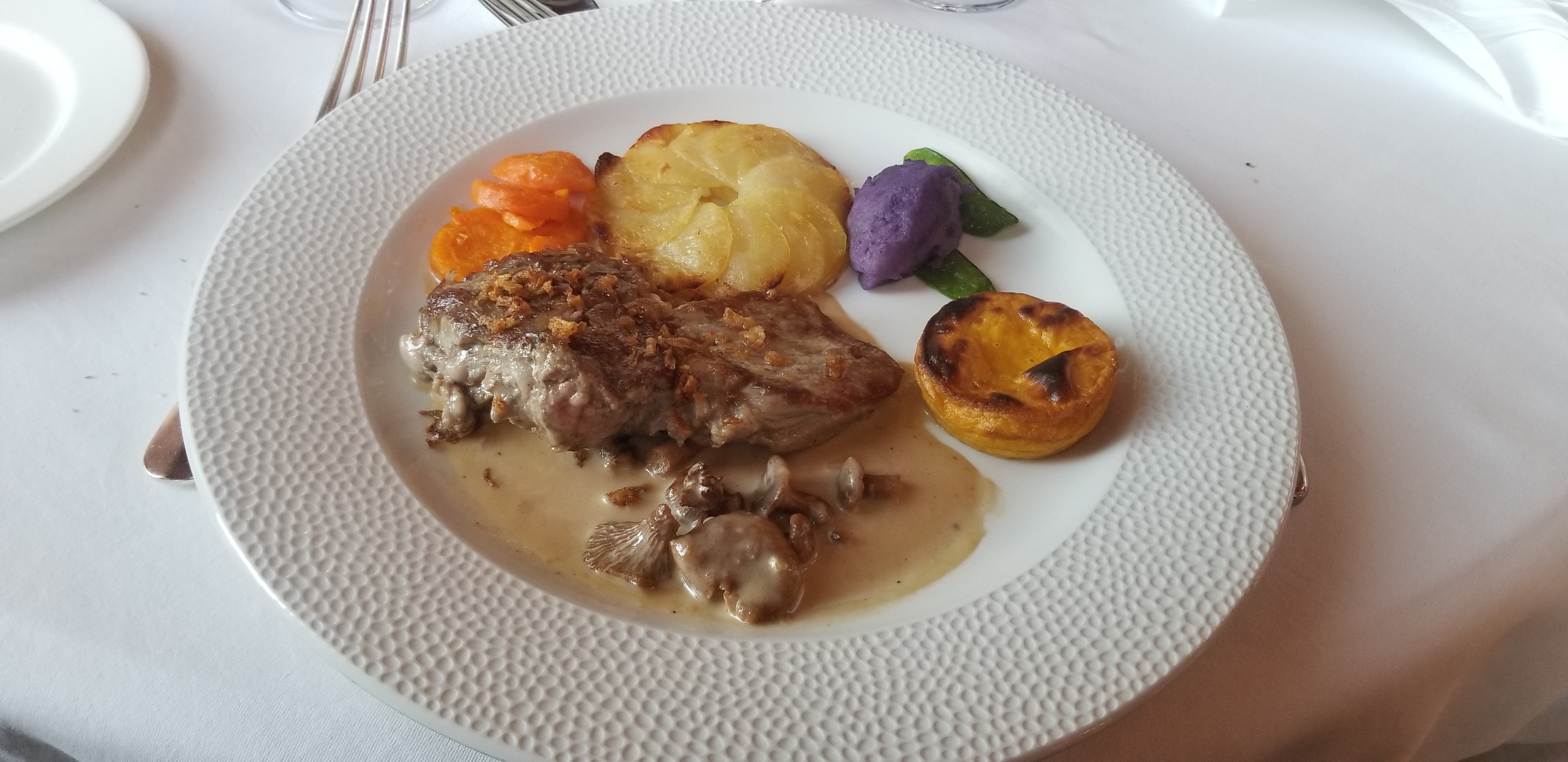 Cadre magnifique et personnel très sympathique et professionnel. Mets raffinés mais...malheureusement, mes filets de rouget n'étaient pas suffisamment cuits. Dommage ! Belle expérience gustative cependant qui met les sens en éveil.