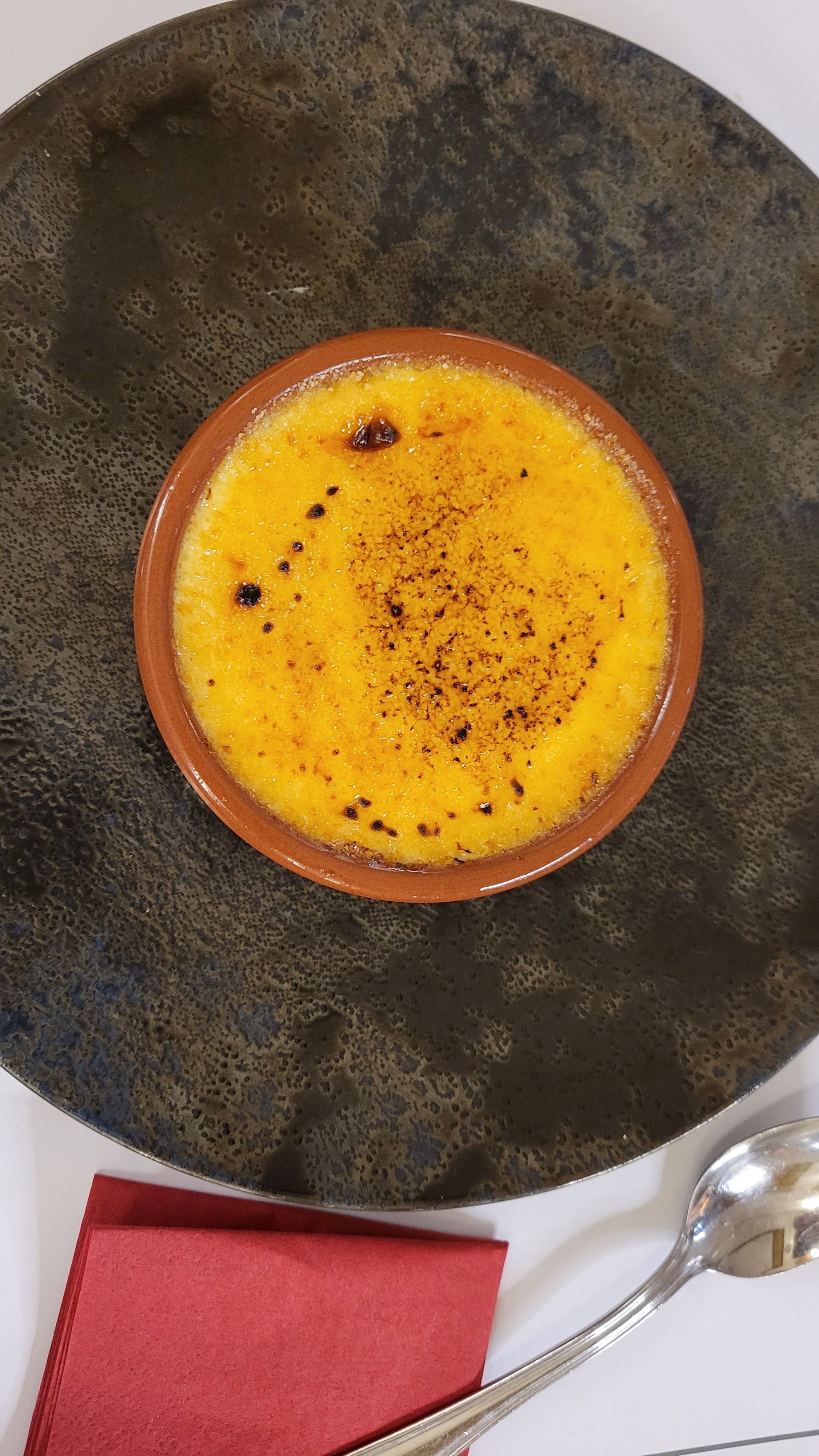 Entrée parfaite mais le poulet à la crème était en fait un poulet rôti assez dur arrosé de crème mais dessert parfait