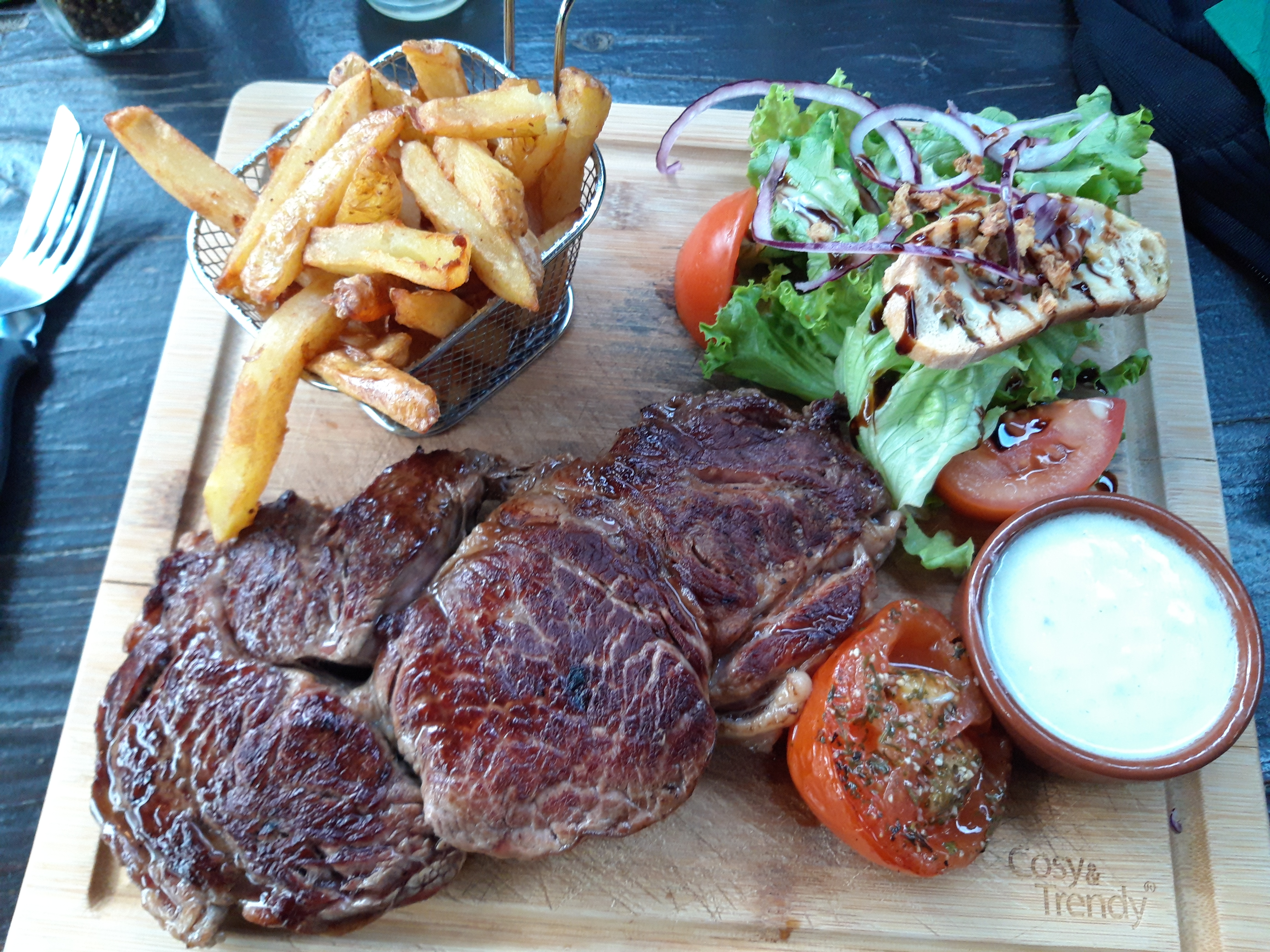 En vacances nous avons bien mangé. Malheureusement cet établissement a une très bonne réputation et c'est presque plein - donc nous avons attendu un bon moment (en. 45' ) pour être servi. Mais cette fois-ci ça valait la peine. Merci au chef qui sait bien cuire les viandes. Cette adresse est sur mes préférées.