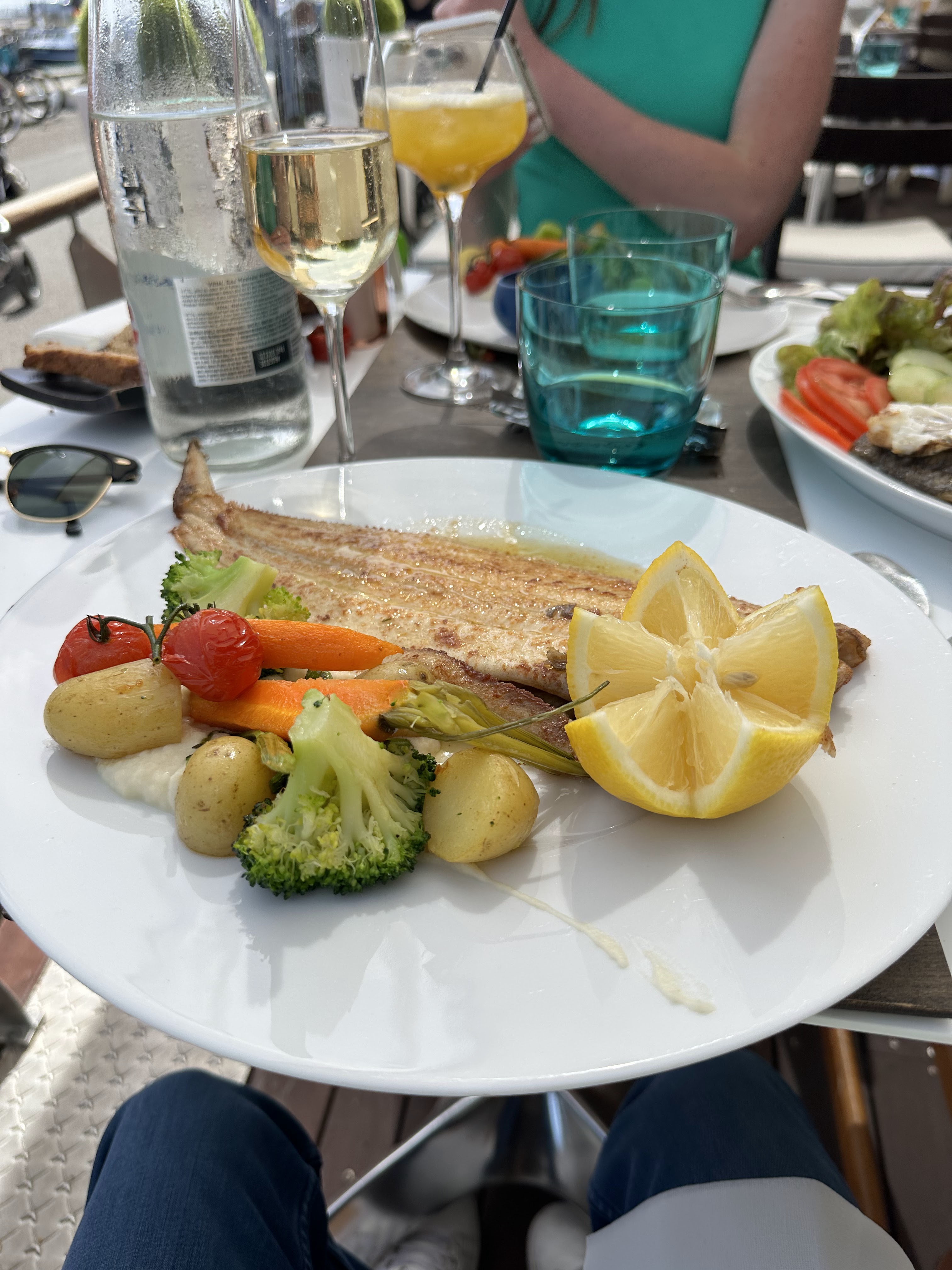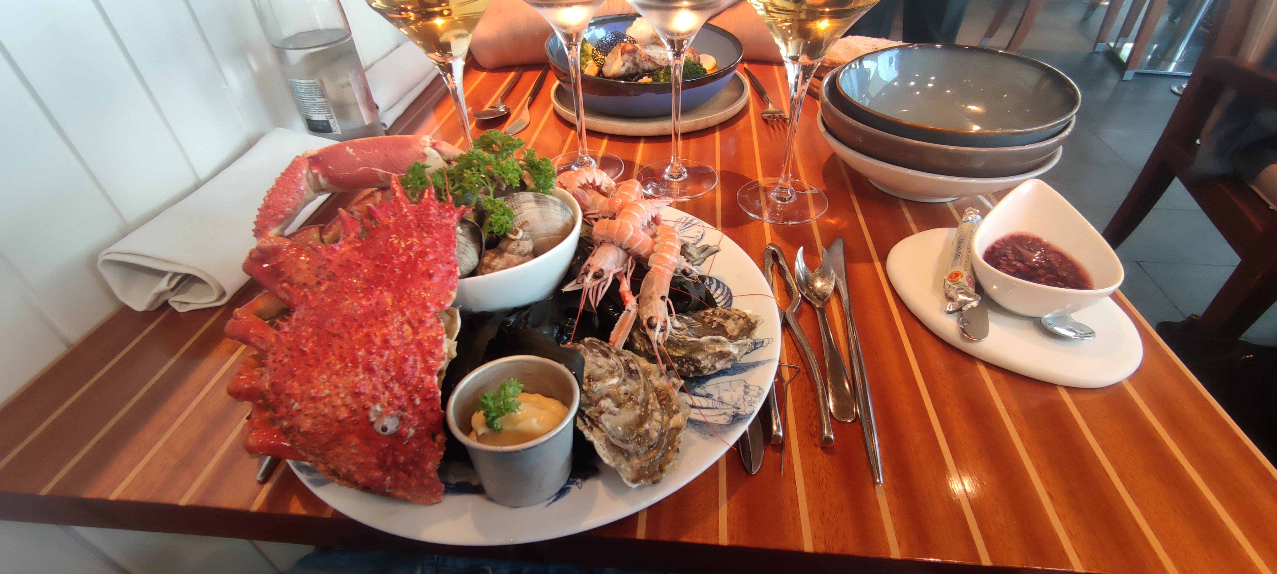 Parfait ! Le décor à l’intérieur vous plonge dans l’ambiance d’ un paquebot . Vous êtes reçus avec le sourire et êtes servis avec attention . La carte n’est pas limitée aux poissons . On y déguste aussi de super viandes . En saison on peut manger confortablement à l’extérieur avec vue sur le port . Bon rapport qualité/prix .On aurait aimé voir passer en salle le chef