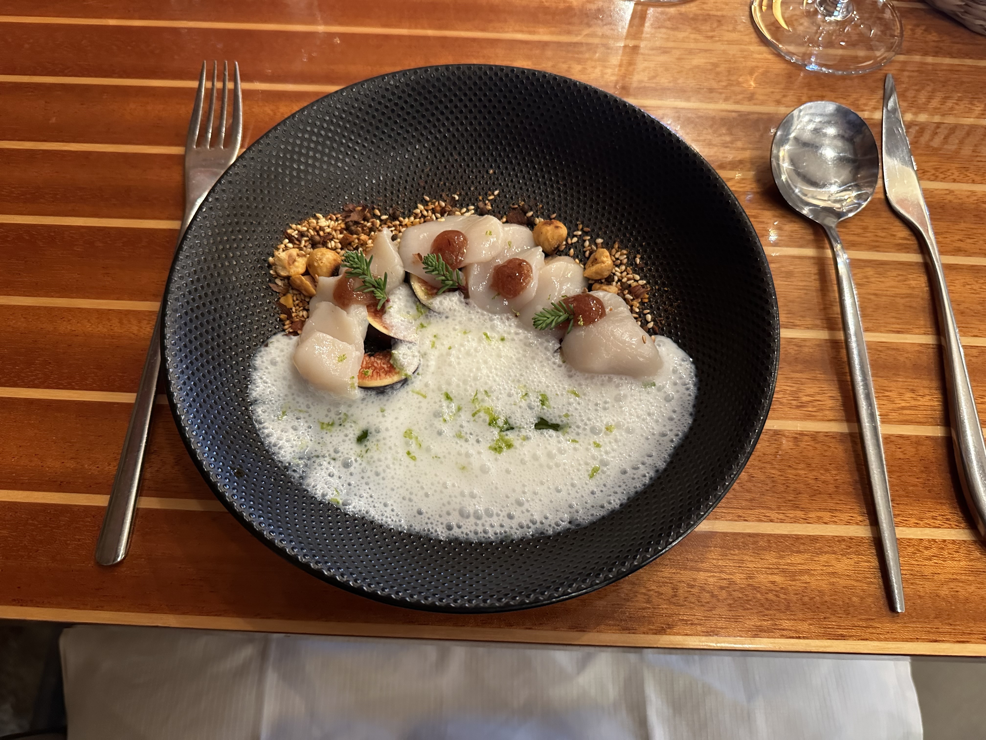 4 menu écume marine. Pas de fausses notes. Cuisson et accompagnement de la lotte parfaits de même pour le bœuf. Service attentionné et professionnel.