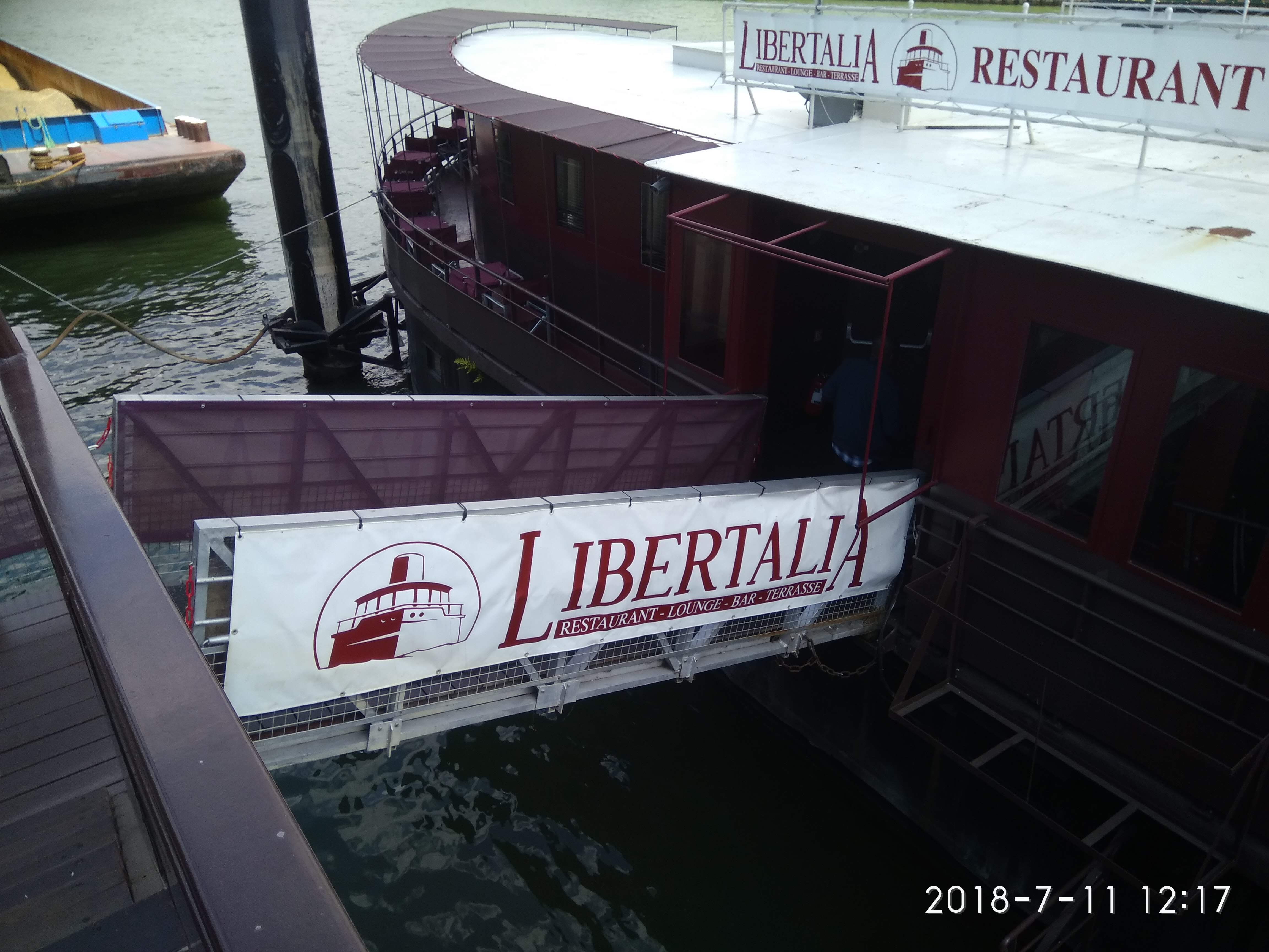 Restaurant à bord d'une péniche à quai... Donc pas de croisière. Stationnement sans encombres la journée... A voir le soir... Cadre atypique. Décor cohérent avec l'esprit du bateau. Piano à bord. Possibilité de jouer ou d'écouter un pianiste (quand il est là). La nourriture reste classique, sans plus. Cocktail Libertalia a base de Rhum arrangé et jus de fruit. Dommage que certains produits n'étaient plus disponibles à la carte.
