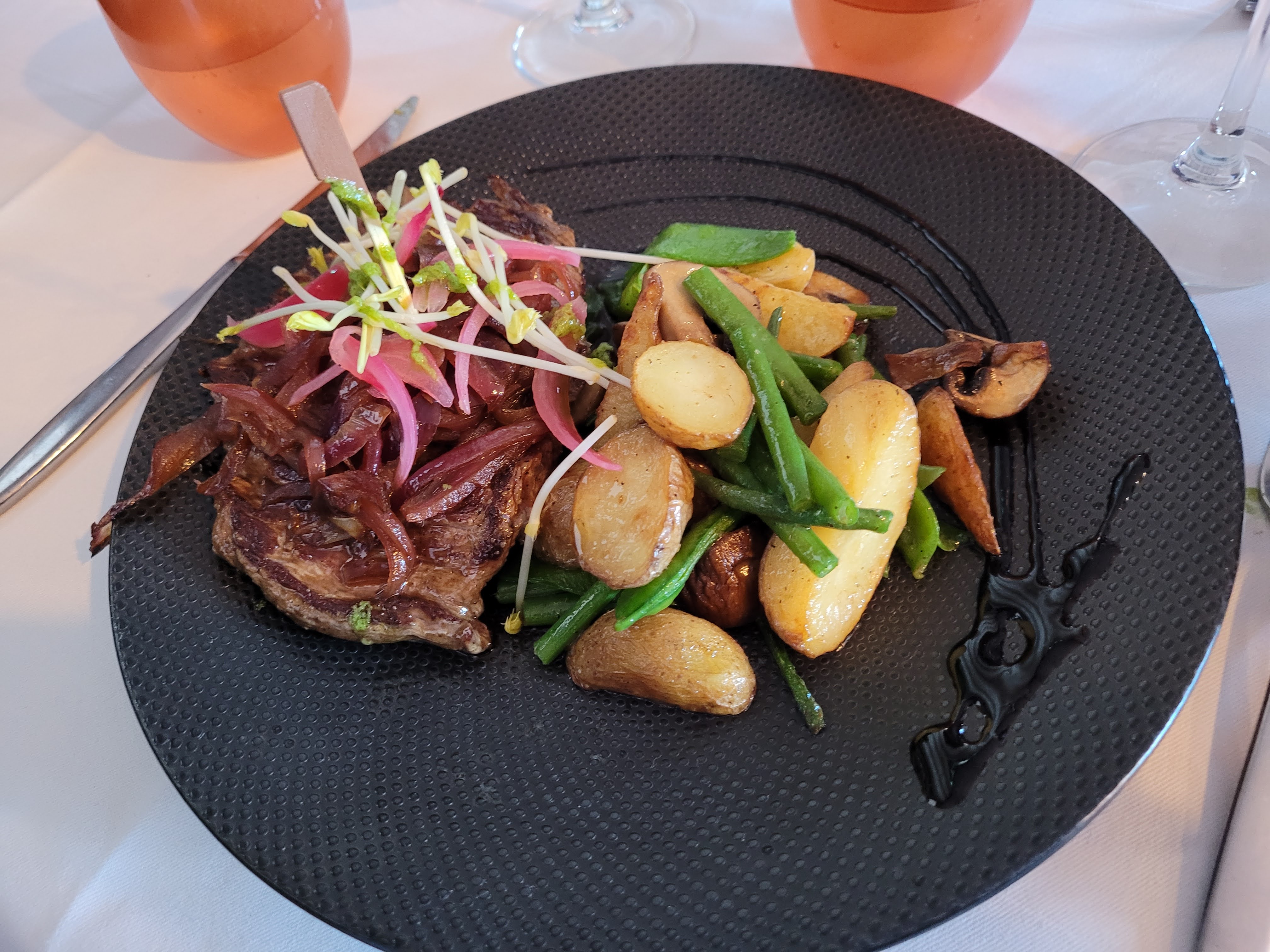 C'était parfait, venue pour la soirée du nouvel an 2024 donc menu spécial 31 Décembre . Le menu a pu être adapté pour ma part puisque je suis enceinte , la soirée a été super bien organisé avec animations magicien chanteuse, karaoké et soirée DJ . On a passé un super moment et le service été au top , les serveuses au petit soin pour chacun d'entre nous , il y avait une bonne ambiance , le cadre était sympa franchement bravo et merci de nous avoir régalé. Bravo en cuisine et au service ainsi que l'organisation.
