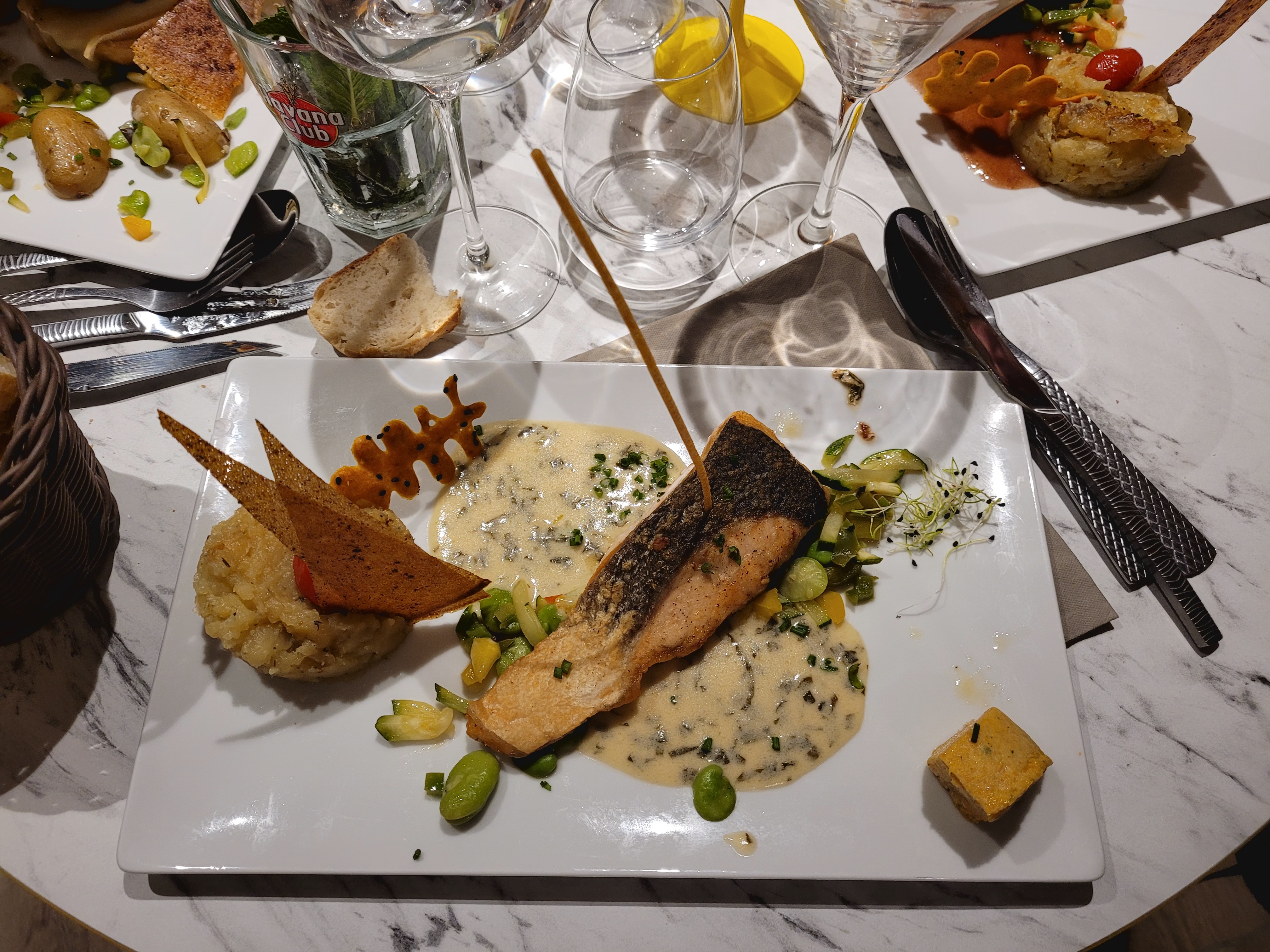 Parfait ! Tout est très bon des amuses-bouches au dessert. Les assiettes sont très belles et copieuses. Service agréable.