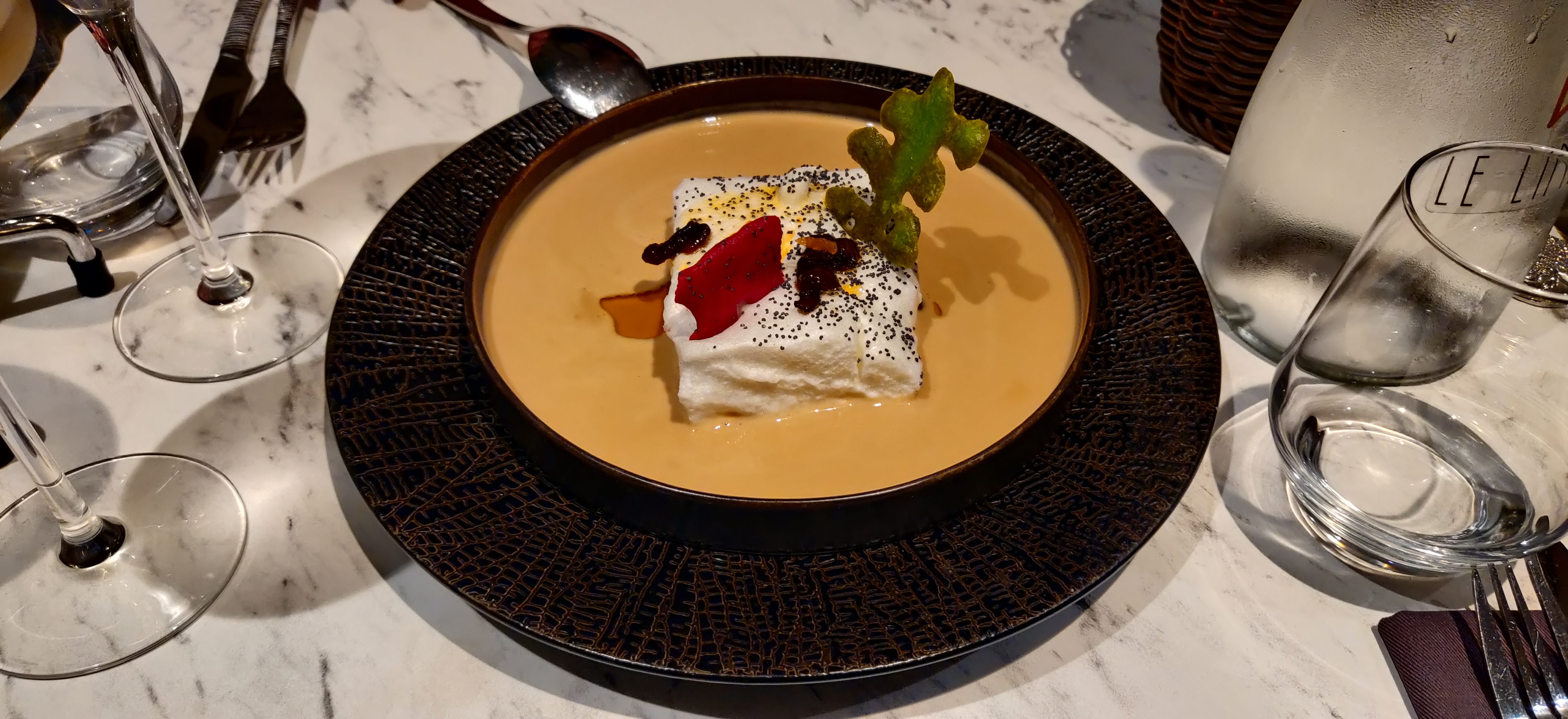 Première fois le 26 décembre pour déjeuner , belle découverte ! Suggestions des chefs : araignée de veau , en entrée un velouté de panais et ses châtaignes ! Une tuerie ! Nous reviendrons 🤤