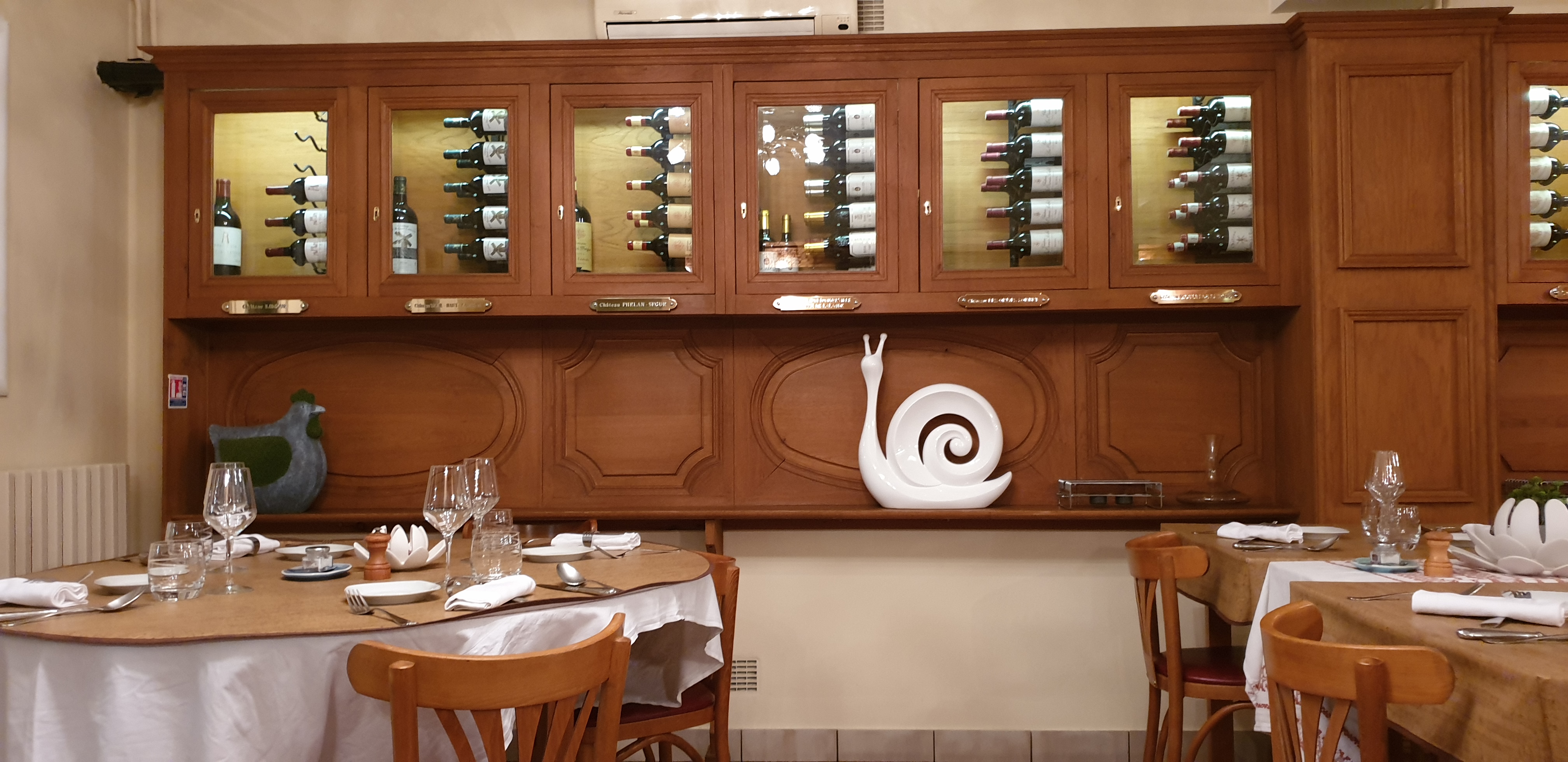 Une très bonne table , générosité et accueil sont fort appréciable ! Un décor qui intrigue avec les bouteilles sous vitrine et fermées à clef mais se sont les viticulteurs des habitués qui gardent en réserve leur propre bouteilles qu’ils dégustent lors d’un dîner ! C’est pour dire que la table est bonne ! D’ailleurs Le poisson, la viande , les mises en bouche ou les desserts et l’après dessert sont très bons et copieux ! Merci chef !
