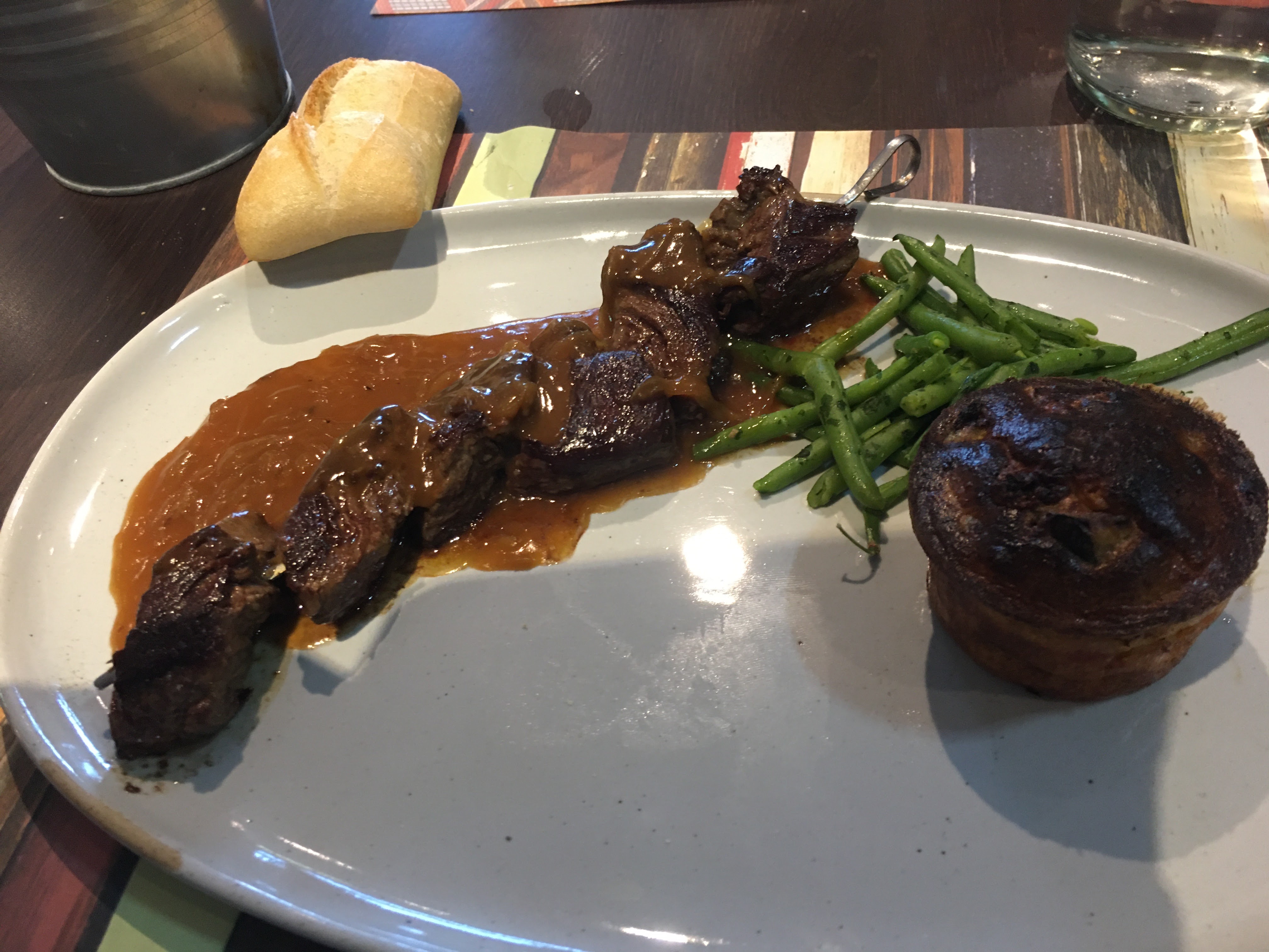 Enormément déçu ! J’ai commandé un faux filet, la seule viande n’ayant pas sur le menu une importation de signalée (j’ai fait une photo du menu). Ne voulant pas tomber dans la paranoïa culinaire par ce manque de traçabilité, je penser me délecter. Eh bien non ! Viande presque immangeable d’une dureté incroyable (dommage que je n’avais pas sur moi mon pénétromètre). Déçu on ne m’y reprendra plus…
