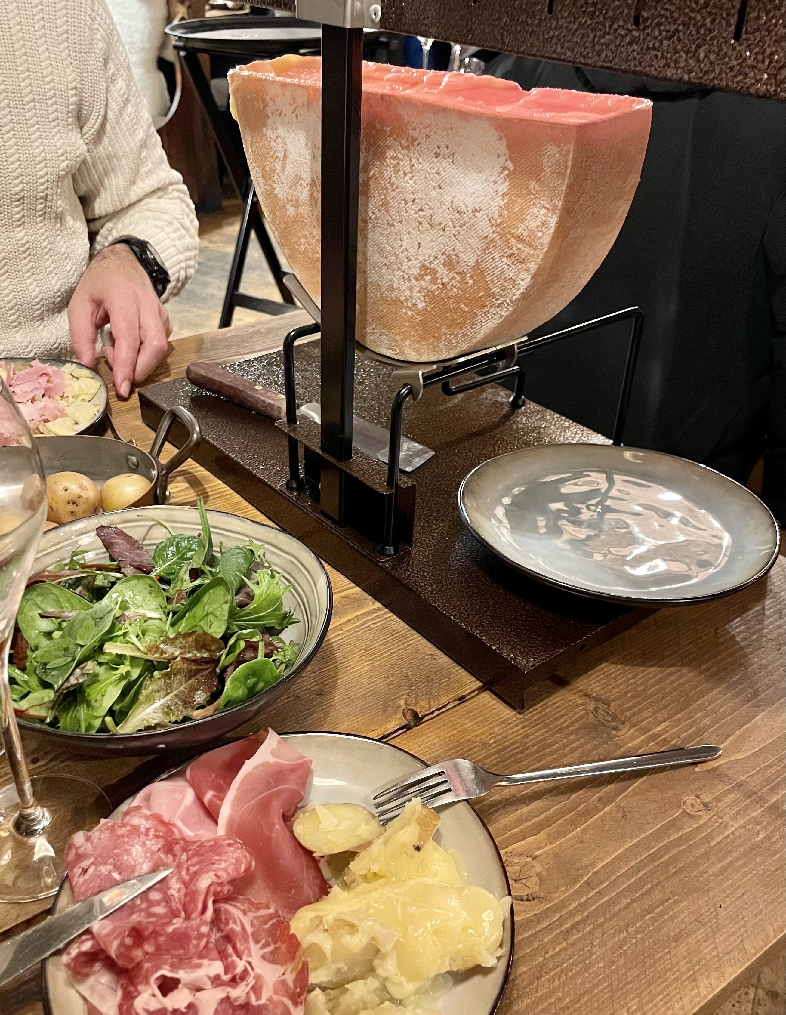 En arrivant le personnel nous assoies directement à notre table. Personnel très chaleureux rapide et à l’écoute. Les plats étaient délicieux, en bonne quantité et il ne manquait pas de raclette. Les amateurs de bons vins seront conquis ;). Je conseille fortement!!