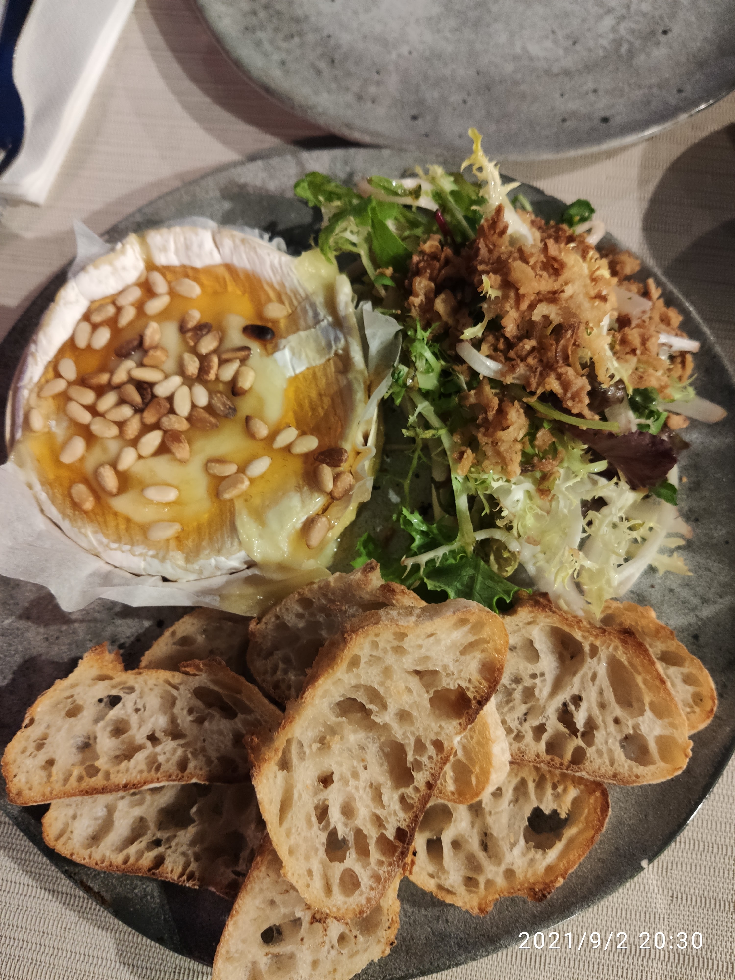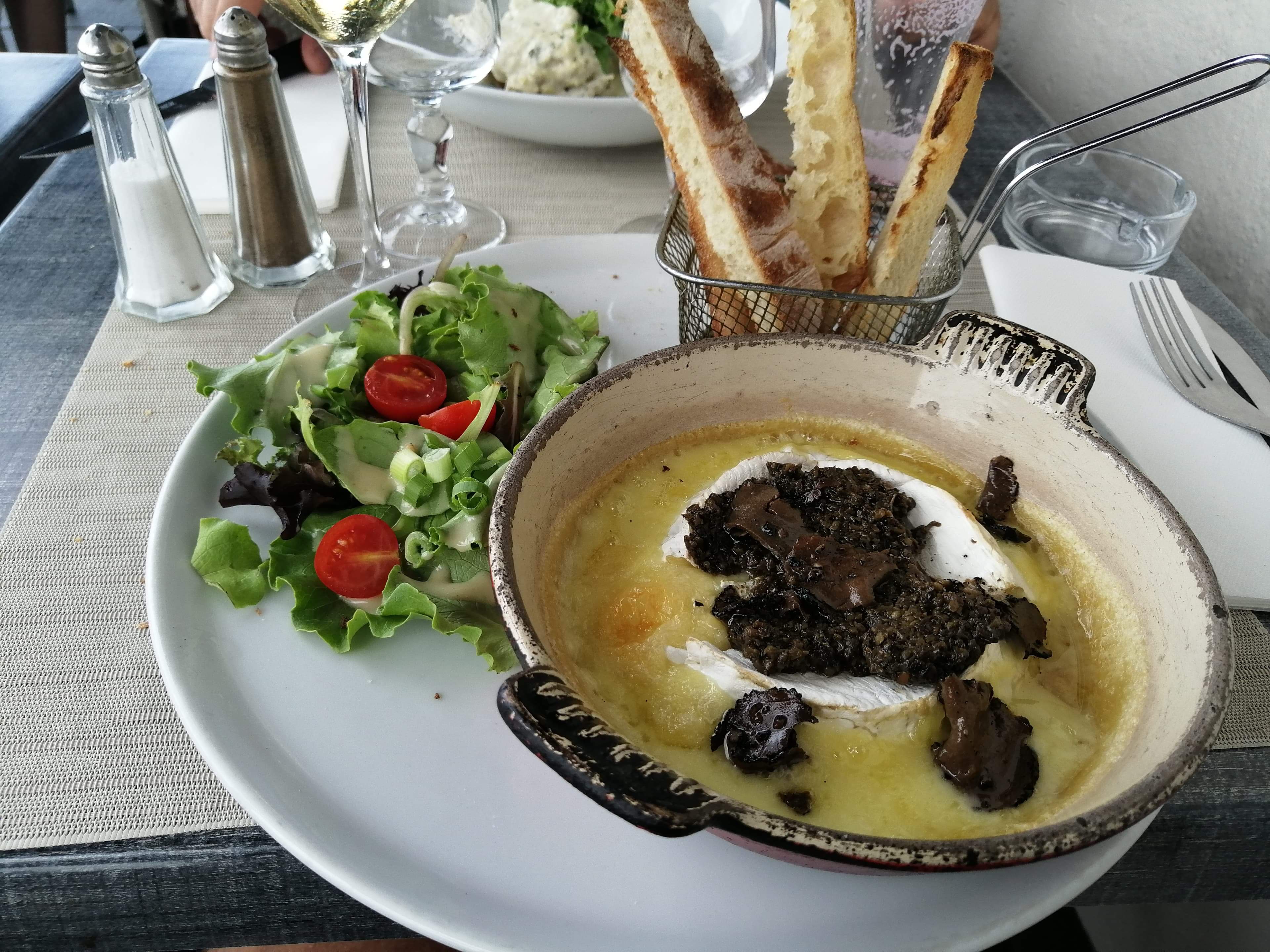 Incroyable camembert au poisson et à la truffe ! Absolument délicieux avec une vue imprenable sur les bateaux sur le port !