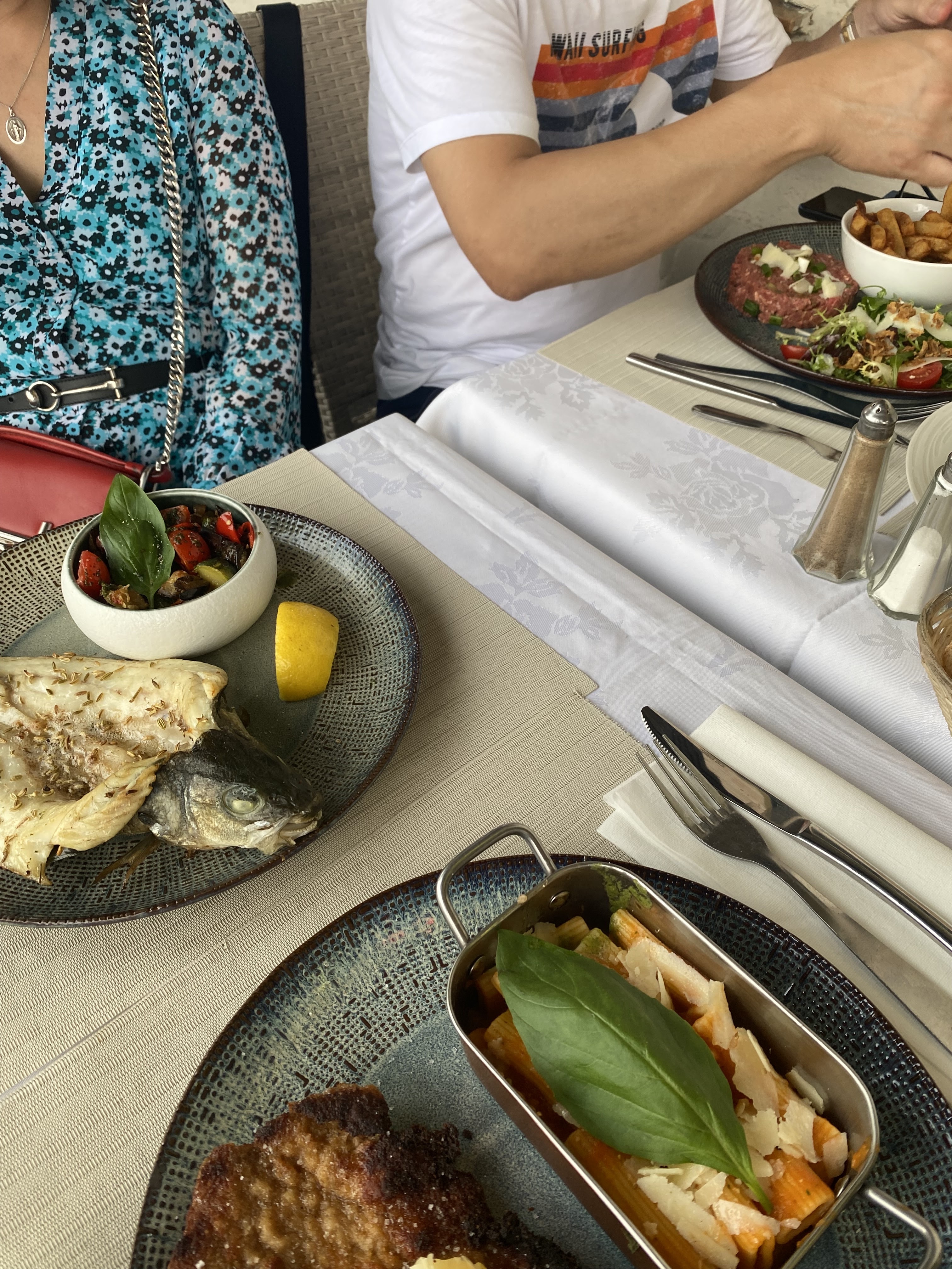 Incroyable! Nous sommes allés déjeuner et avons essayé la bruschetta, la mayonnaise aux œufs, le veau, le bar, les linguine à la sauce tomate, le crumble aux pommes et les profiteroles. Chaque plat était parfait ! La nourriture était très fraîche et avait le goût d'avoir été préparée à la maison. nous étions pressés car nous avions un avion à prendre, nous l'avons expliqué à notre serveur et il a apporté les plats très rapidement même si le restaurant était occupé. Il est bien situé sur le port avec une belle vue. Je recommande cet endroit à 100%