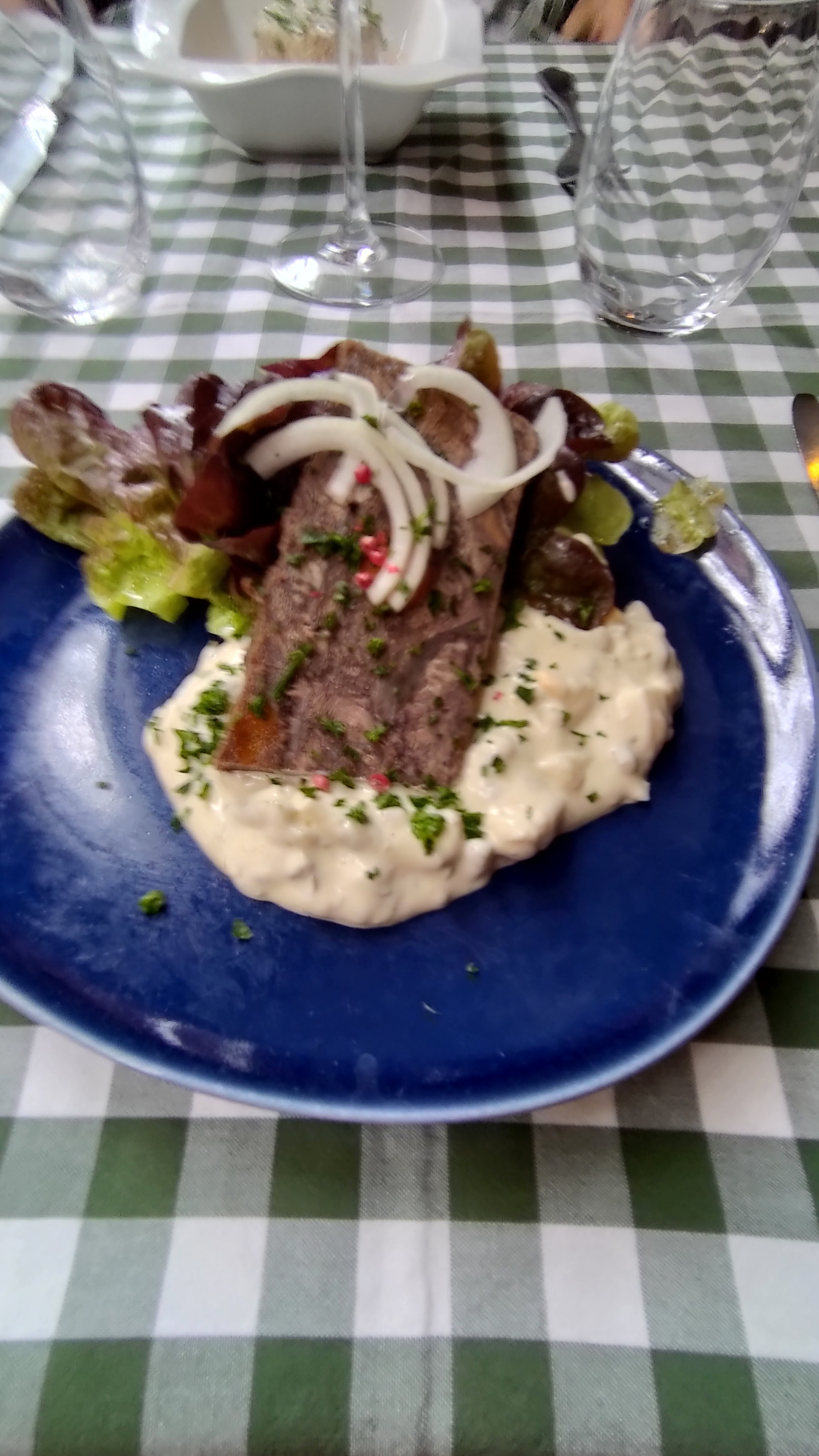 De l'entrée au dessert, assiettes très bien présentées..la terrine de jambon persillé sauce gribiche est un régal, .... A recommander et à bientôt pour découvrir les autres plats