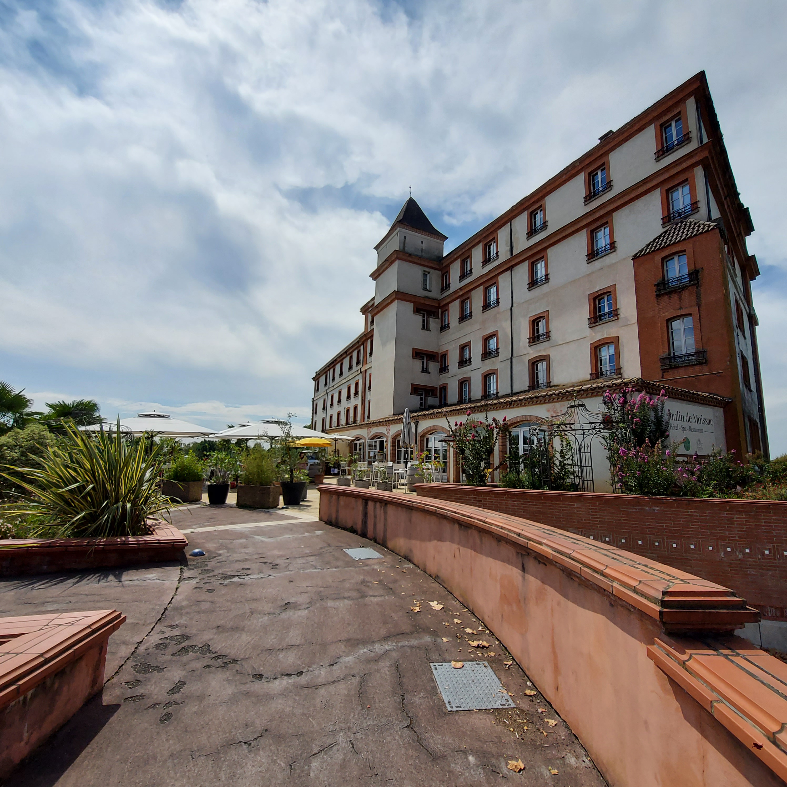 Un court arrêt à Moissac où mon Père a passé quelque temps il y a plus de 70 ans. Ce déjeuner au bord du Tarn fut enchanteur. Un Maître cuisinier œuvre en cuisine, c’est certain: quel talent ! Une carte originale, un menu entrée-plat-dessert imbattable (14€!!!) et des mets de qualité comme on en rêve. Le plat choisi fut végétarien avec une belle courgette ronde farcie sur un croquant. Et les desserts !!! Une Pavlova aux prunes d’une légèreté … la meringue et la chantilly fondaient en bouche. Le craquant d’amande avec son sabayon … une pure merveille !! Un craquant grand mais fin, un sabayon en abondance d’un goût exquis et une crème d’amande sur le fond… bravo !! Et un cadre merveilleux au bord du moulin de Moissac. Top !!!