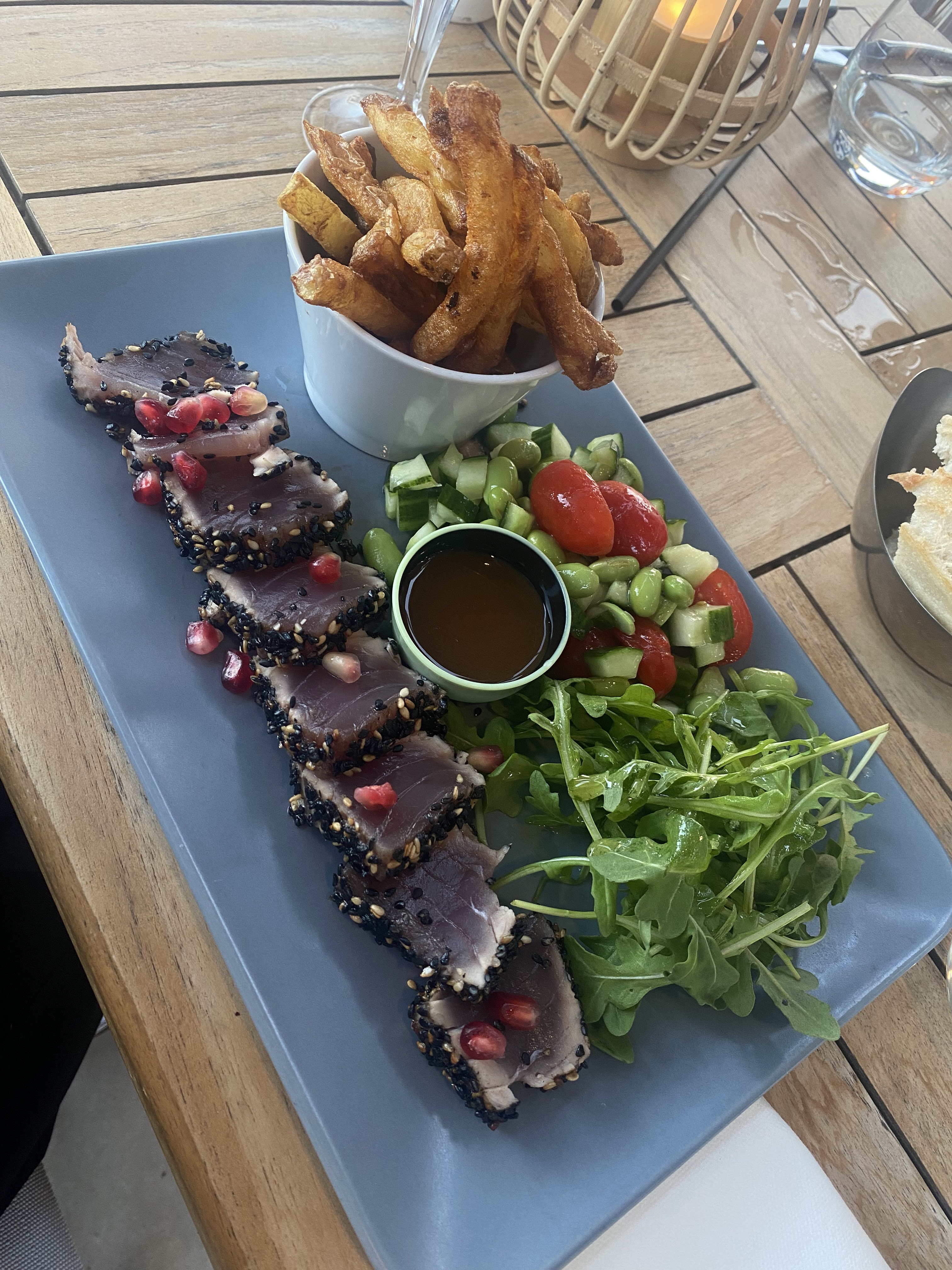 Succulent déjeuner sur la terrasse avec très belle vue sur mer et port. Accueil excellent et service impeccable. Cuisine de qualité à base de produits frais. Deux coups de cœur : les couteaux flambés en persillade et le thon mi-cuit cru à cœur. Ne quittez pas votre table sans craquer sur le fondant au chocolat trop gourmand et le délicieux tiramisu revisité.