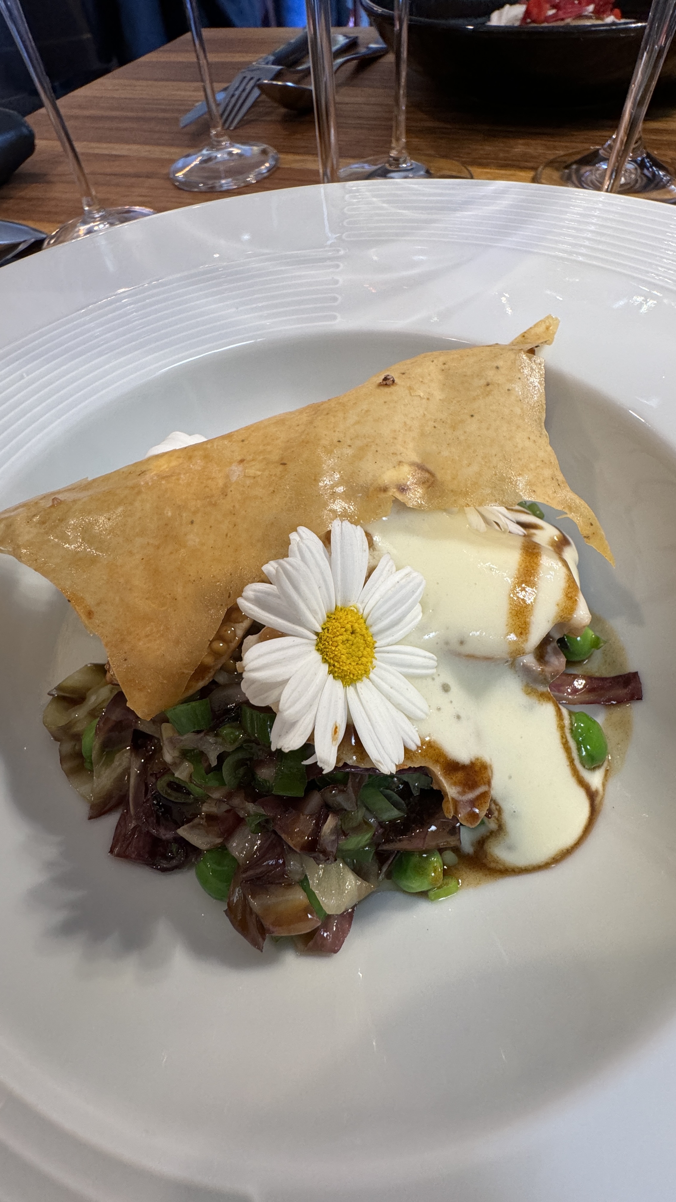 experience parfaite. une cuisine raffinée et exquise. le chef s'est adapté sans difficulté au régime végétarien avec des propositions improvisées de très grande qualité. les desserts en trompe l'œil étaient aussi beaux que délicieux. la cave est également de qualité une très belle découverte à laquelle nous ne nous attendions pas. merci pour cette soirée.