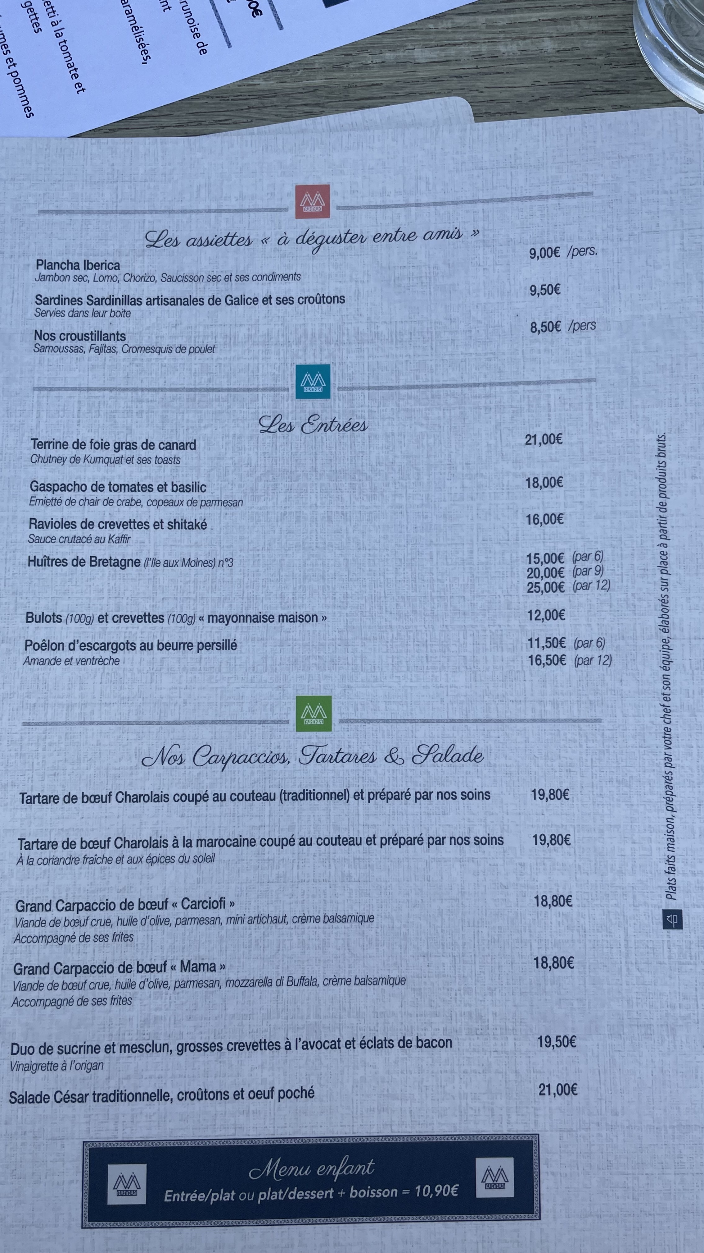 Nous sommes venus plusieurs fois déjeuner et dîner au M et nous y revenons à chaque fois avec plaisir tant nous savons que nous serons accueillis avec le sourire et gentillesse (et attention spéciale apportée aux enfants, très appréciée). Les menus sont constamment revus en fonction des saisons et très frais. Difficile de ne pas succomber aux desserts. Décoration soignée. Superbe adresse de la Baule !!