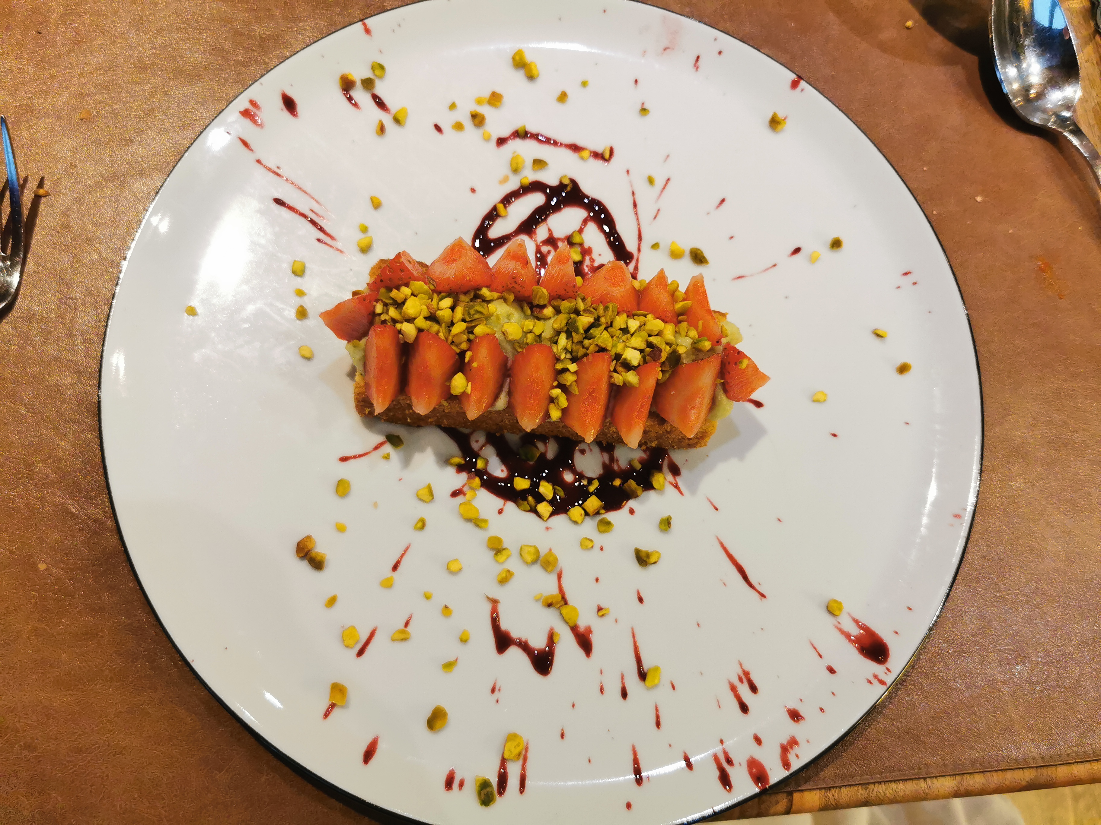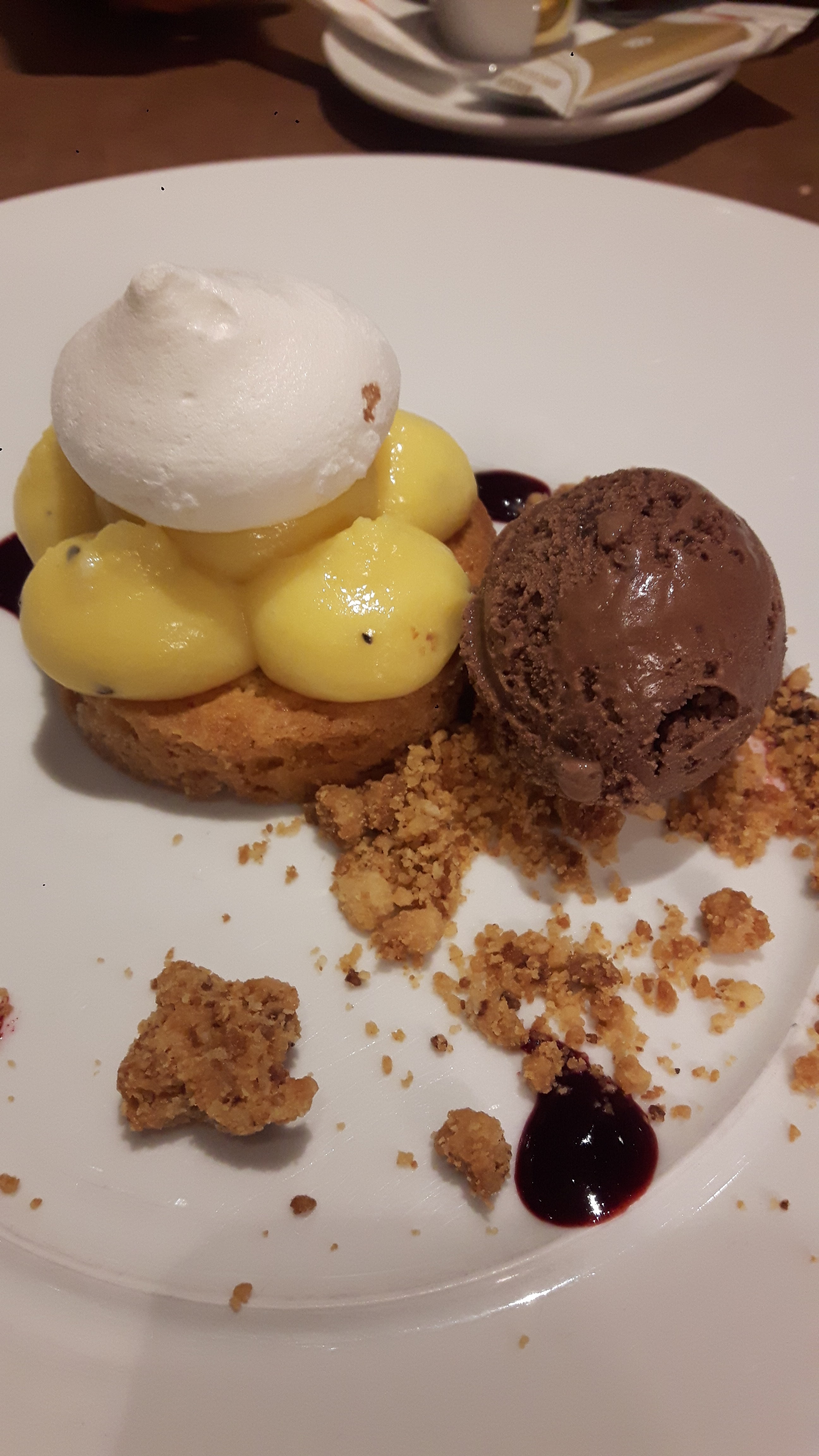 Sans grand intérêt dans l assiette. C est bon mais pas assez frais La décoration est très bien faite comme l emplacement Dessert soigné