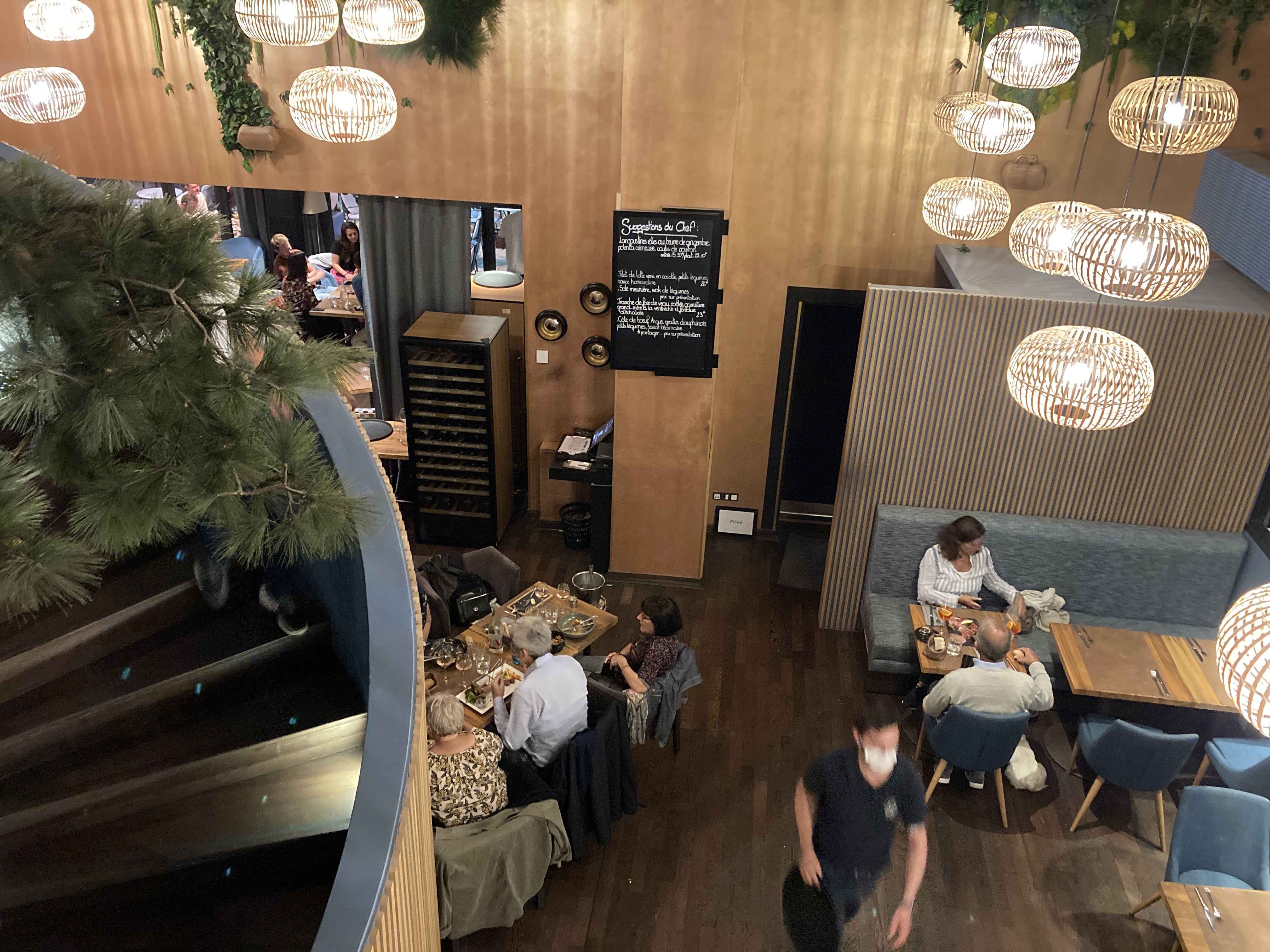 Nous étions à l'étage serveur très sympa et très professionnel.Nous avons très bien mangé.2 plats pour environ 22euros chacun.Le vin est un peu cher. Nous reviendrons sans hésiter.A recommandé.