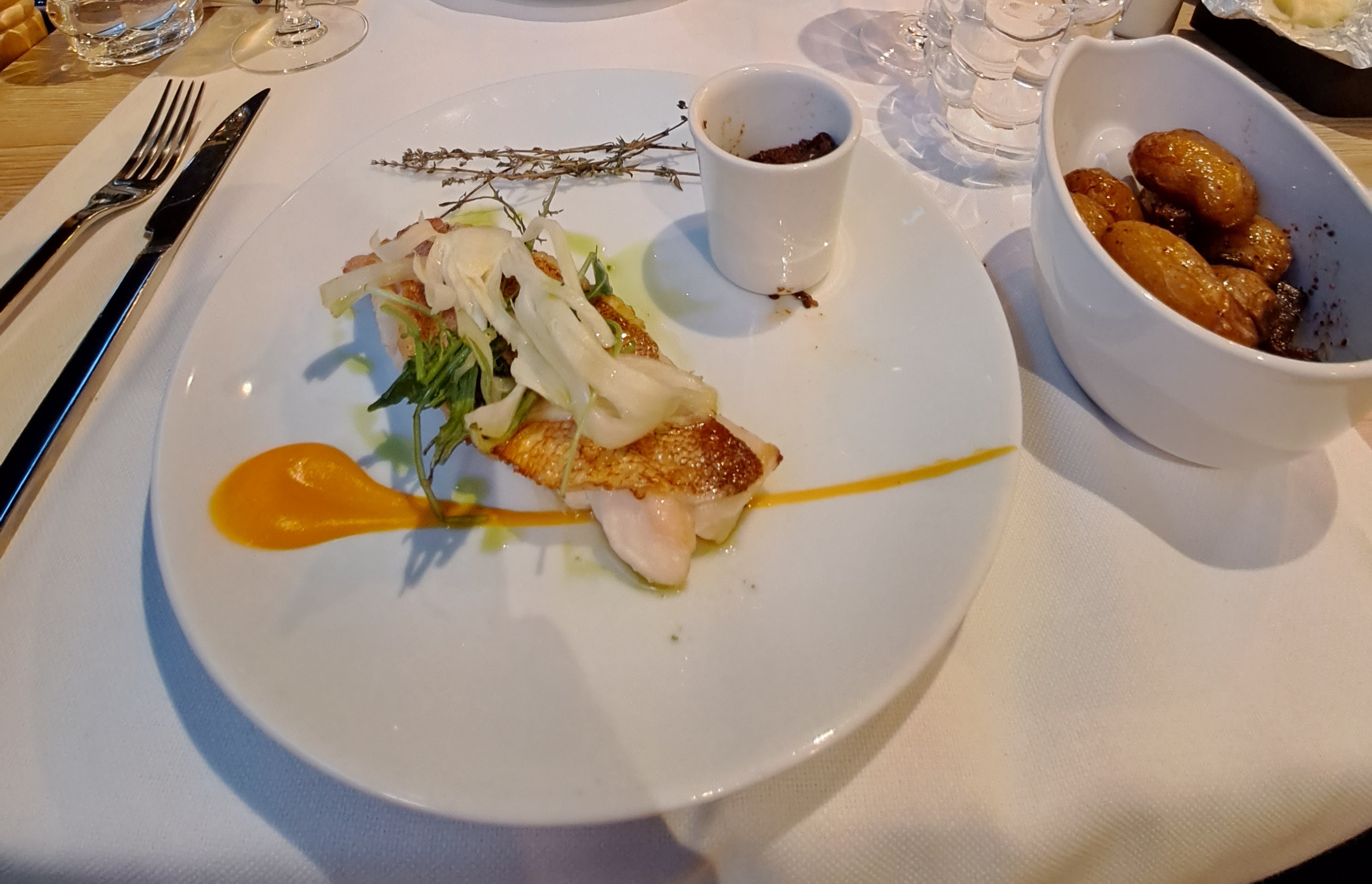 Dîner de super qualité, de l'entrée au poisson et ses accompagnements, tout ça avec un service très pro et disponible ! Une très belle adresse, bravo aux patrons pour cette réussite !