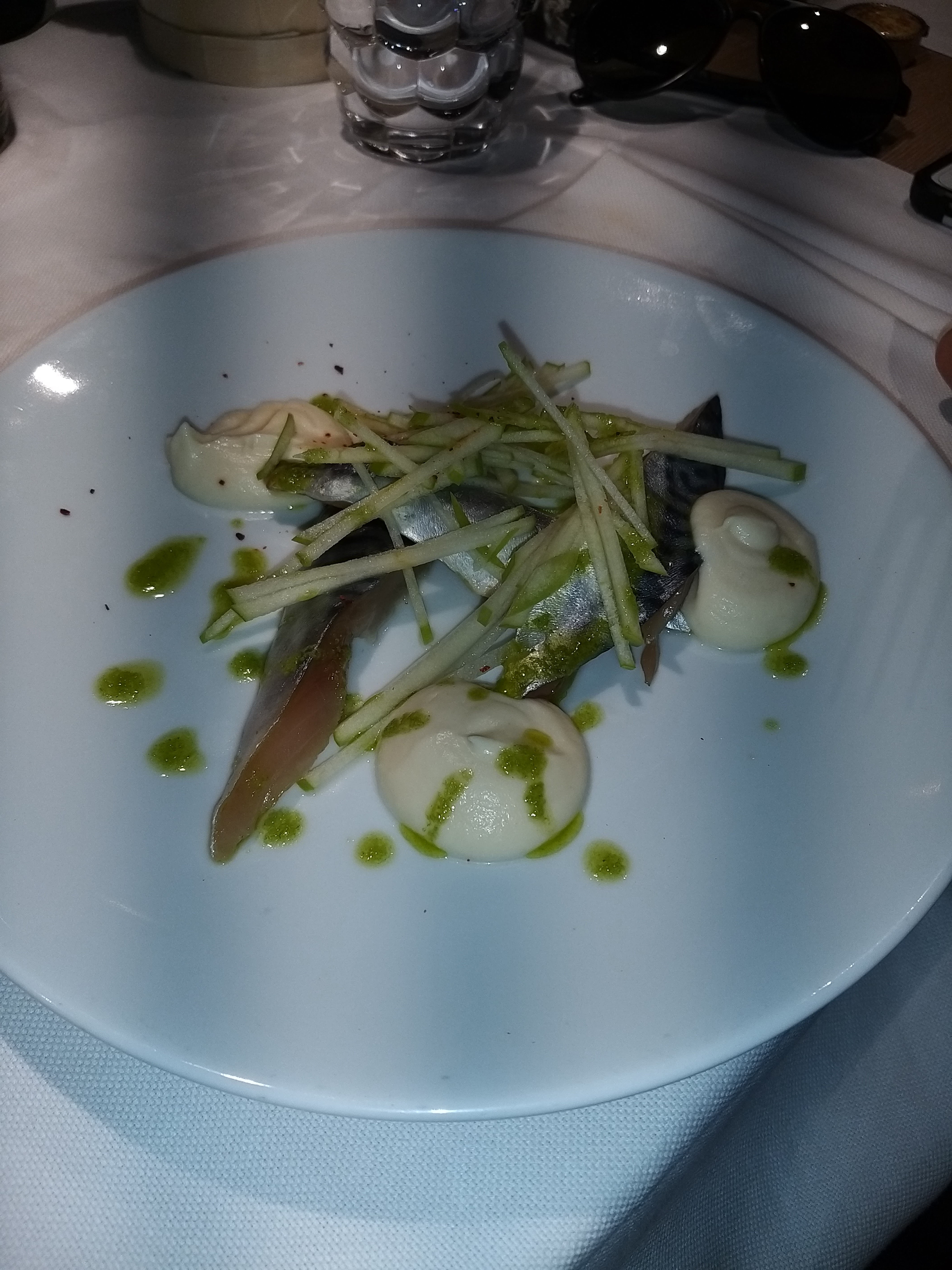 Dîner entre amis à 4. Jolie découverte. Le cadre est très agréable avec une décoration contemporaine feutrée et soignée. Accueil et service très pro. Les plats de poissons sont vraiment bien travaillés. Le tartare de maigre est topissime. Desserts avec des fruits de saisons (fraise et rhubarbe 👍). Nous nous sommes régalés. Très bonne adresse à retenir sans hésiter.