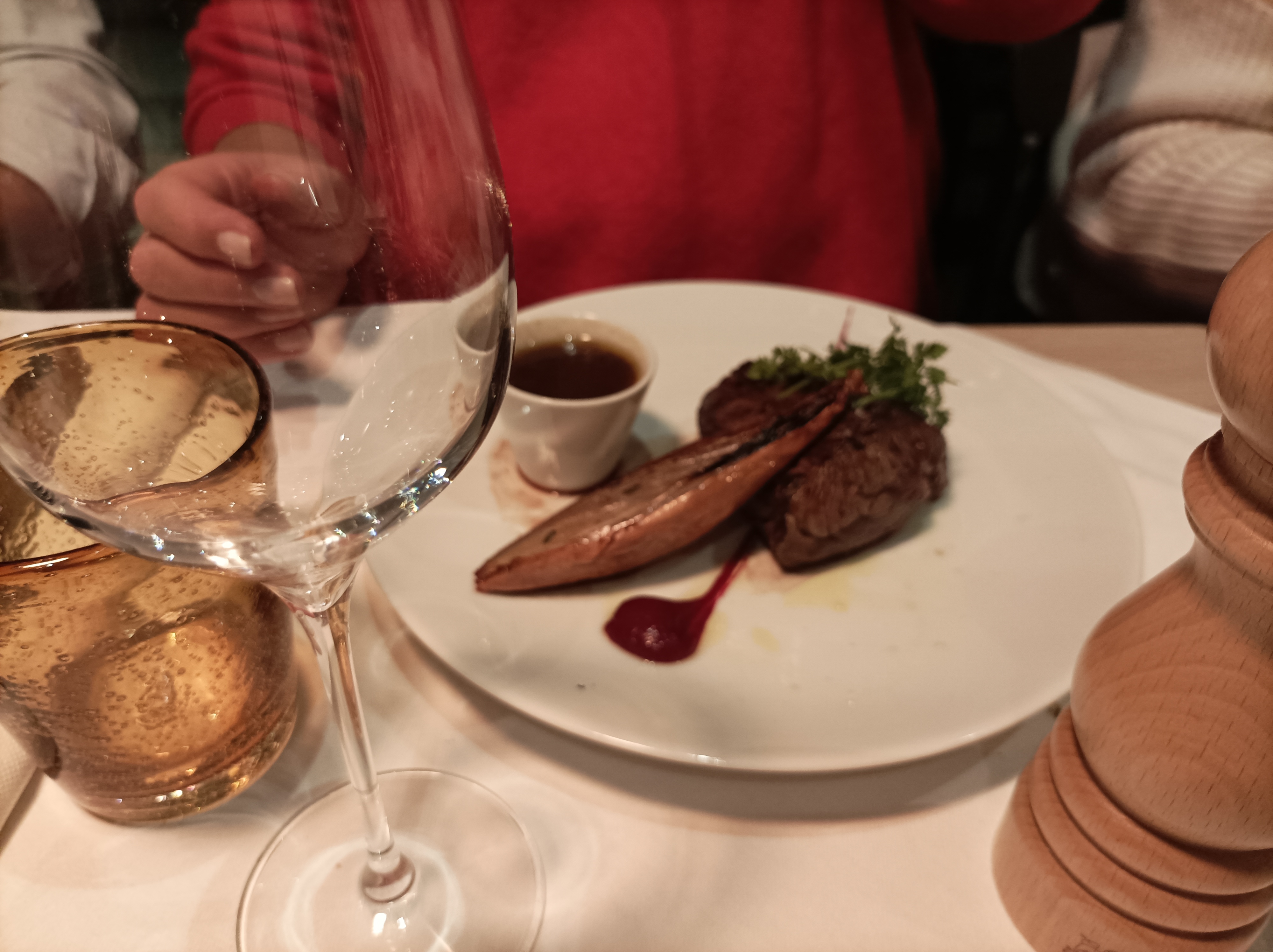 Repas entre amies, accueil chaleureux, décoration soignée. Quant aux repas, viande savoureuse cuite à la perfection avec son accompagnement!! Un régal! Petit plus, nous avons été guidées sur le choix de notre vin selon nos critères et vraiment c'était un délice. Équipe agréable et très professionnelle. Je recommande vivement!!