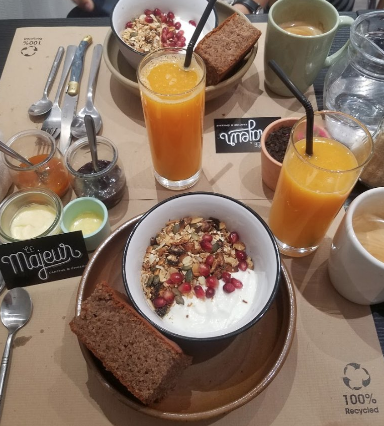 Nous avons pris le petit déjeuner, c'était délicieux, le service est impeccable 👌🏼 Le plus : Le Majeur propose des produits sans gluten et sans lactose (pour les intolérants). Le 2eme plus : Pour 1€ supplémentaire lors du paiement de l'addition, un repas est offert à une personne dans le besoin. #poureux #altruisme