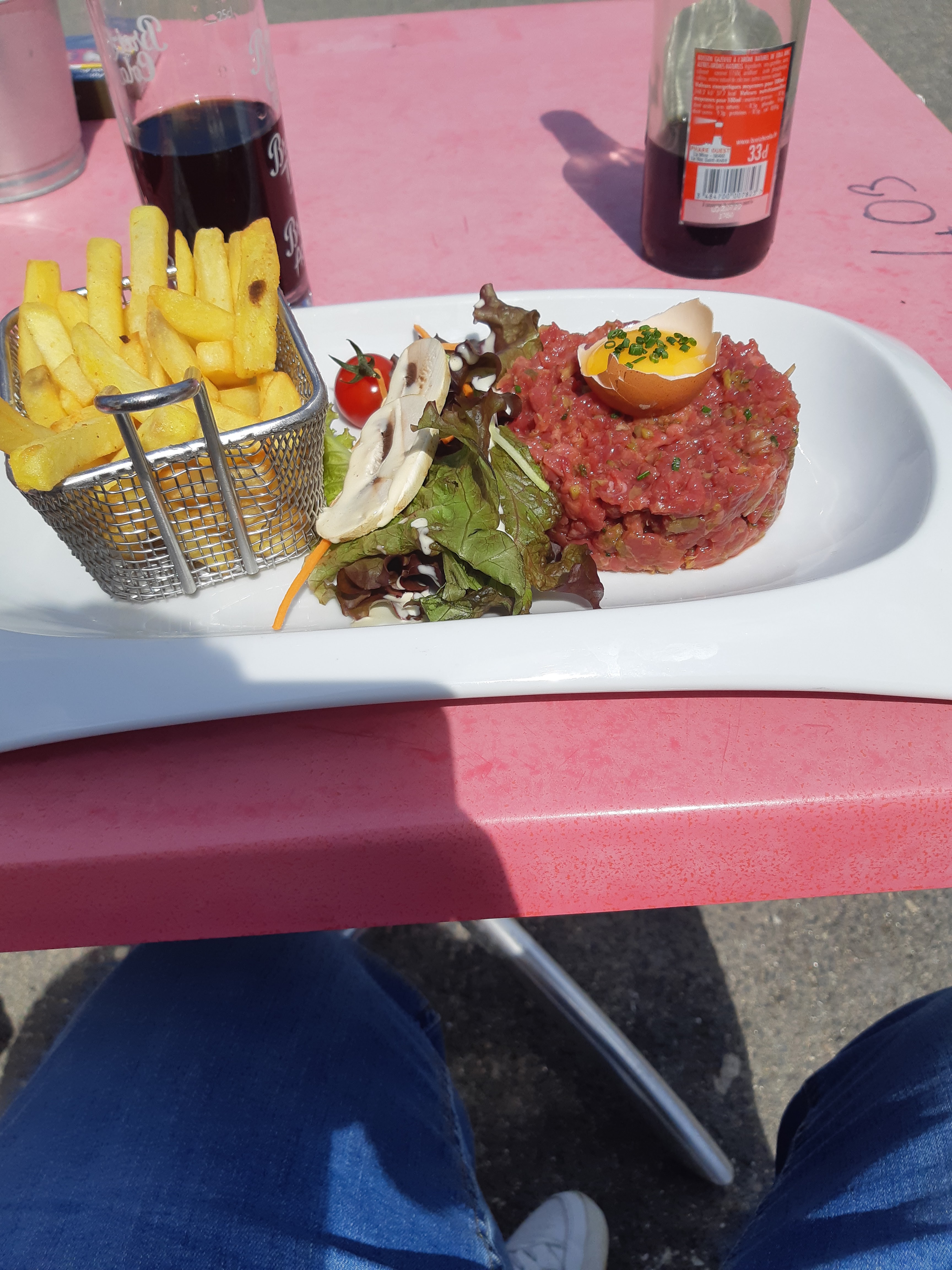 Déjeuné ce midi. Palourdes très bonnes dommage que le beurre ne reste pas dedans mais vraiment très bonnes. 18,00€ un peu chères mais c'est les vacances. Faux filet tendre frites un peu trop cuites mais mangeables. Globalement satisfait.