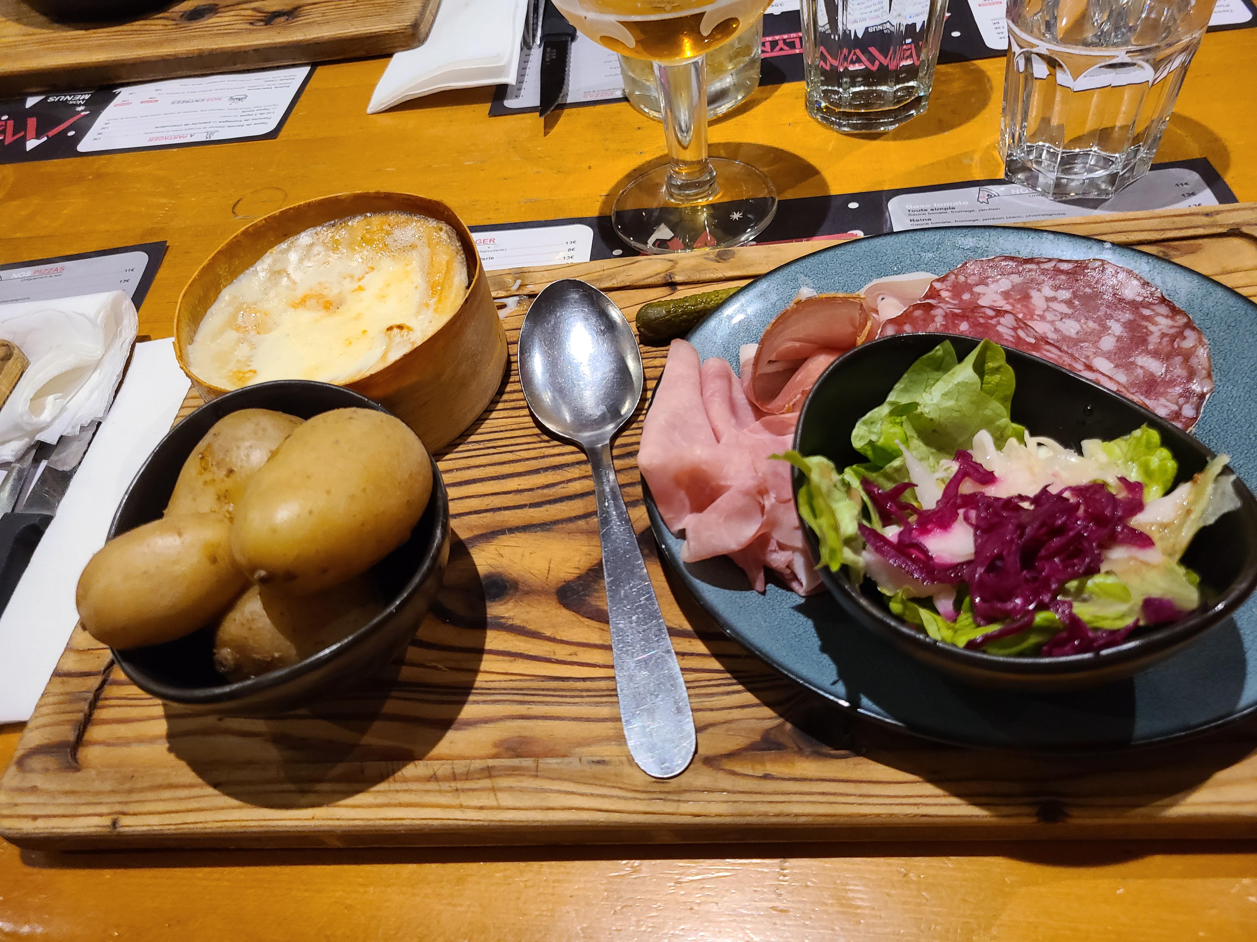 Invité pour un anniversaire, le repas était vraiment copieux avec le choix entre une pierrade et/ou une raclette, il en ait resté une bonne quantité. Service agréable. Ambiance au top, il y avait pas mal de jeunes qui avaient l'air d'apprécier l'endroit.