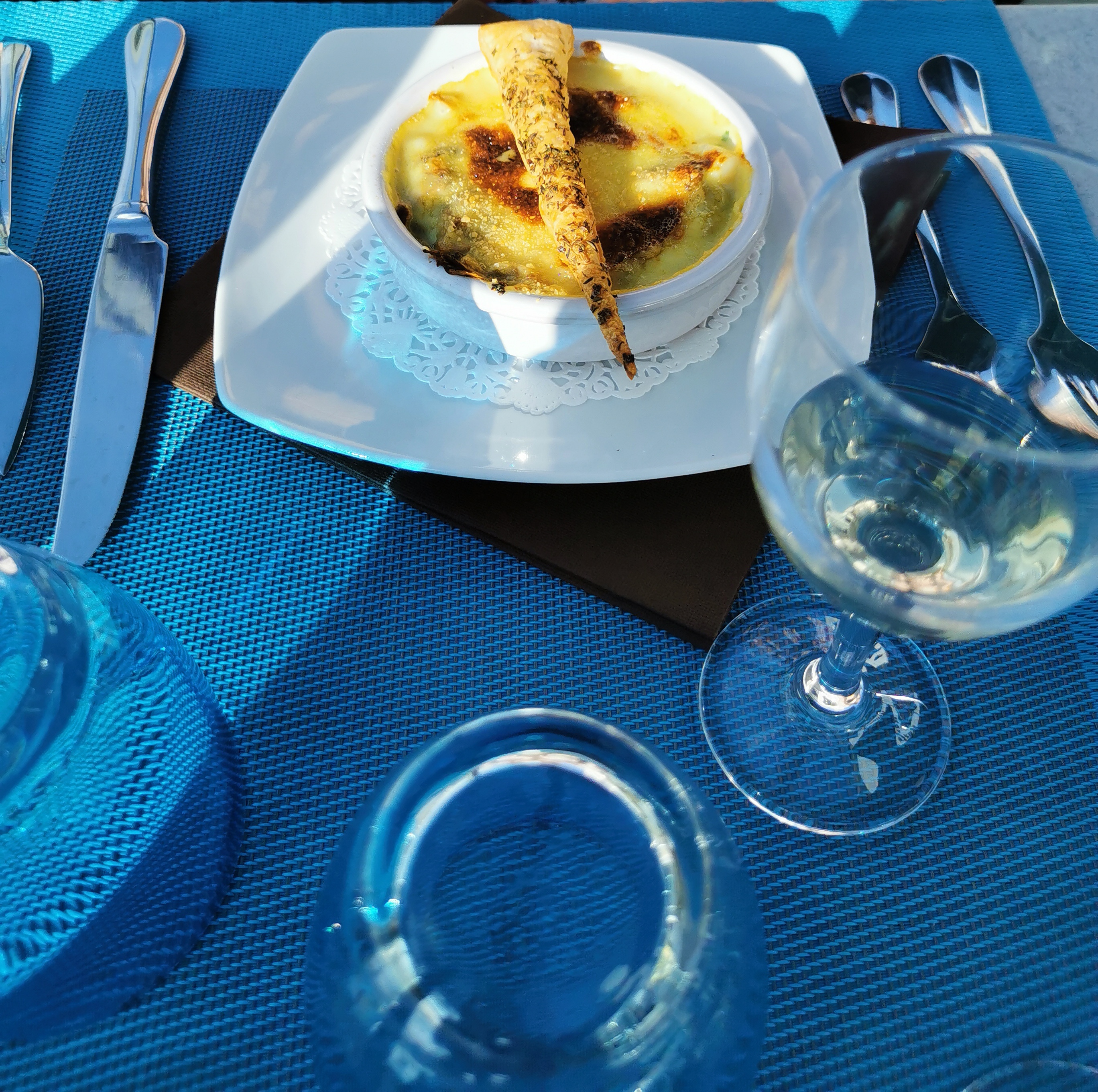 Délicieux repas en terrasse avec des produits frais. Un vrai délice !!!