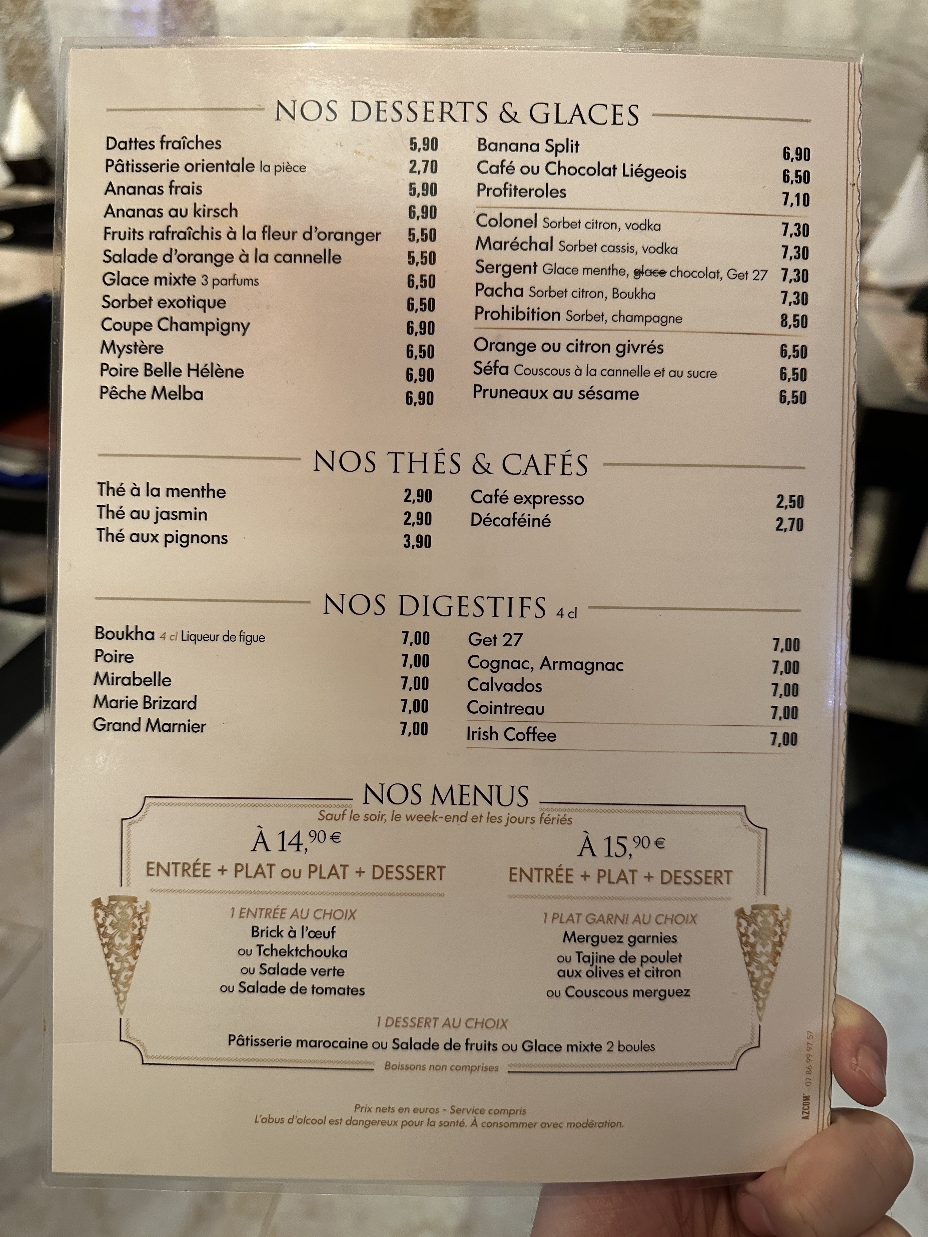 Comme je l ai précédemment très bon couscous,tajine et pastilles,désert au top