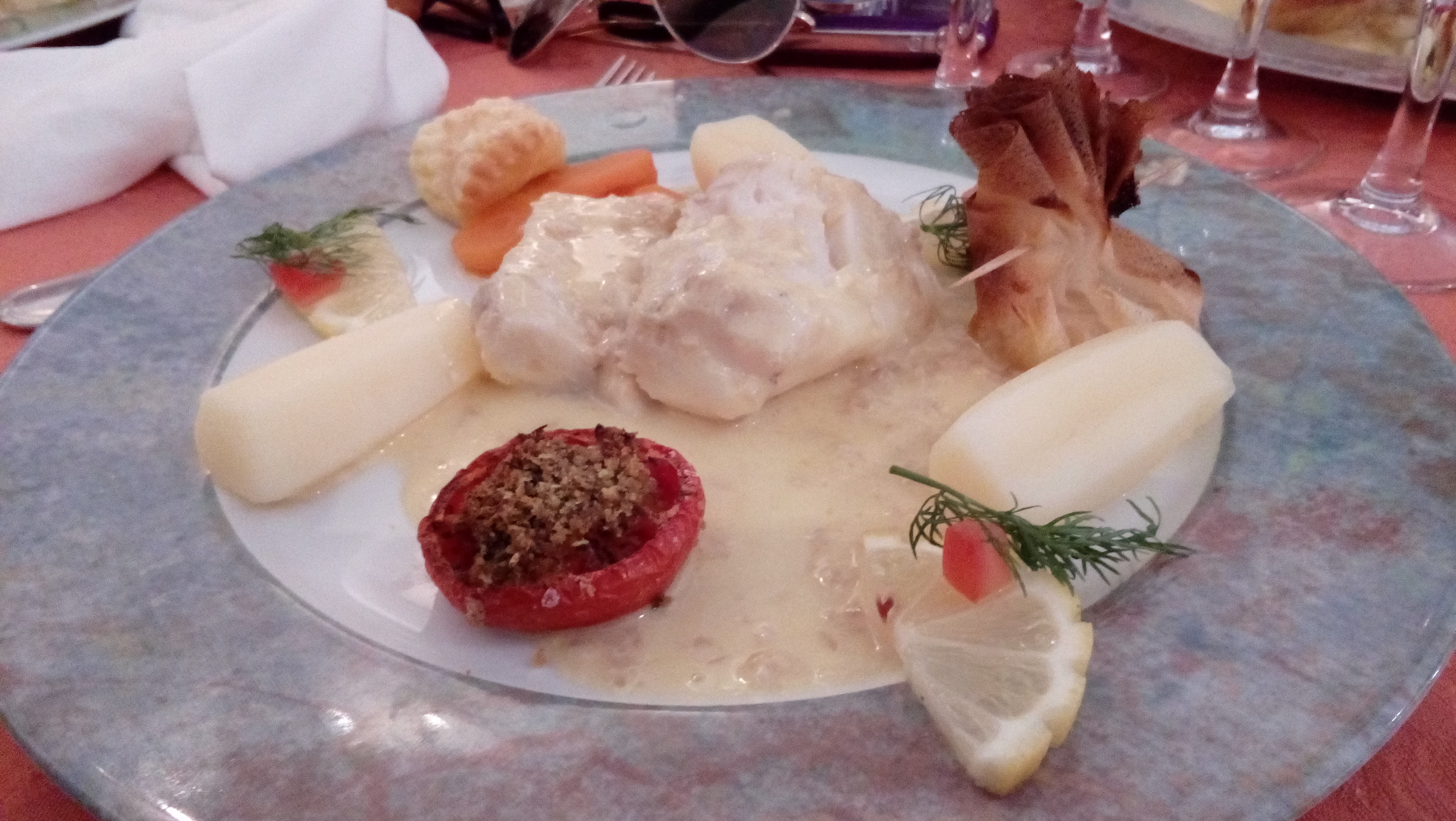 Bon repas mais pas à la hauteur du tarif. Déçu par les desserts (congelé ?) et le pain trop basique...