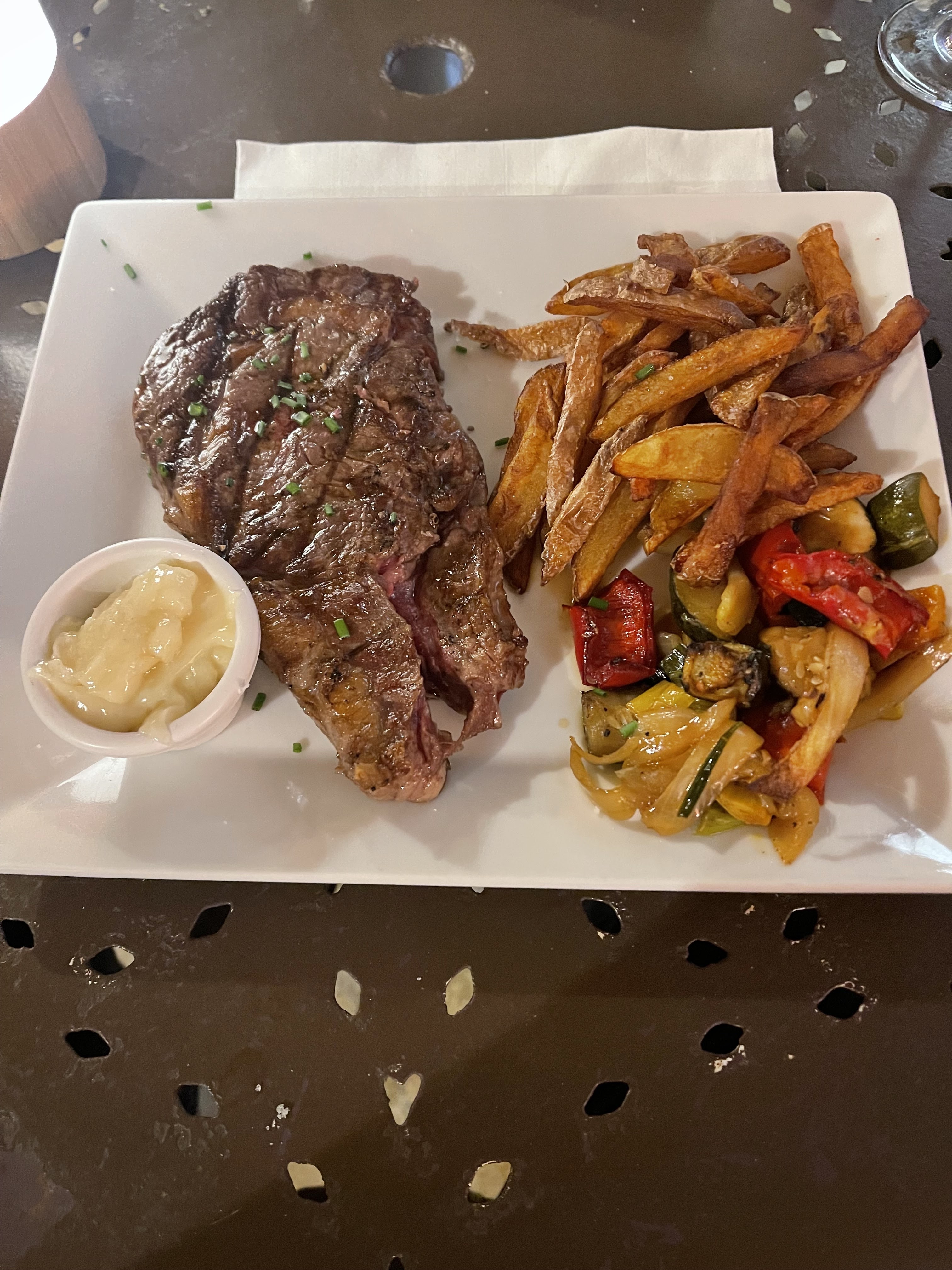 Entrecôte succulente et dessert typique délicieux. Une chouette adresse à l ombre. A faire