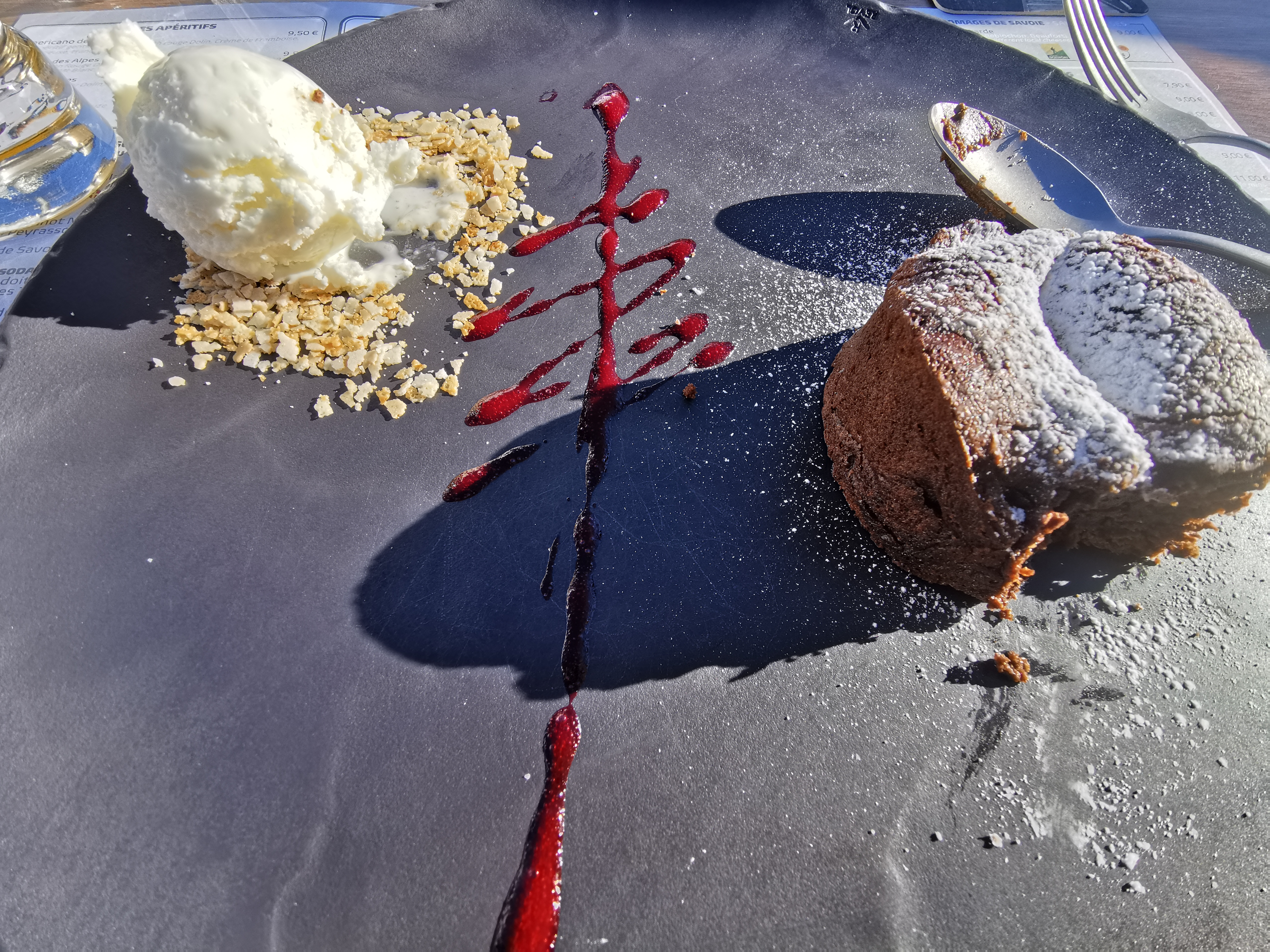 Un super déjeuner en terrasse par une journée ensoleillée à la Plagne. Le plat et le dessert étaient très bons. Une mention spéciale à Hugo qui nous a servi avec le sourire.