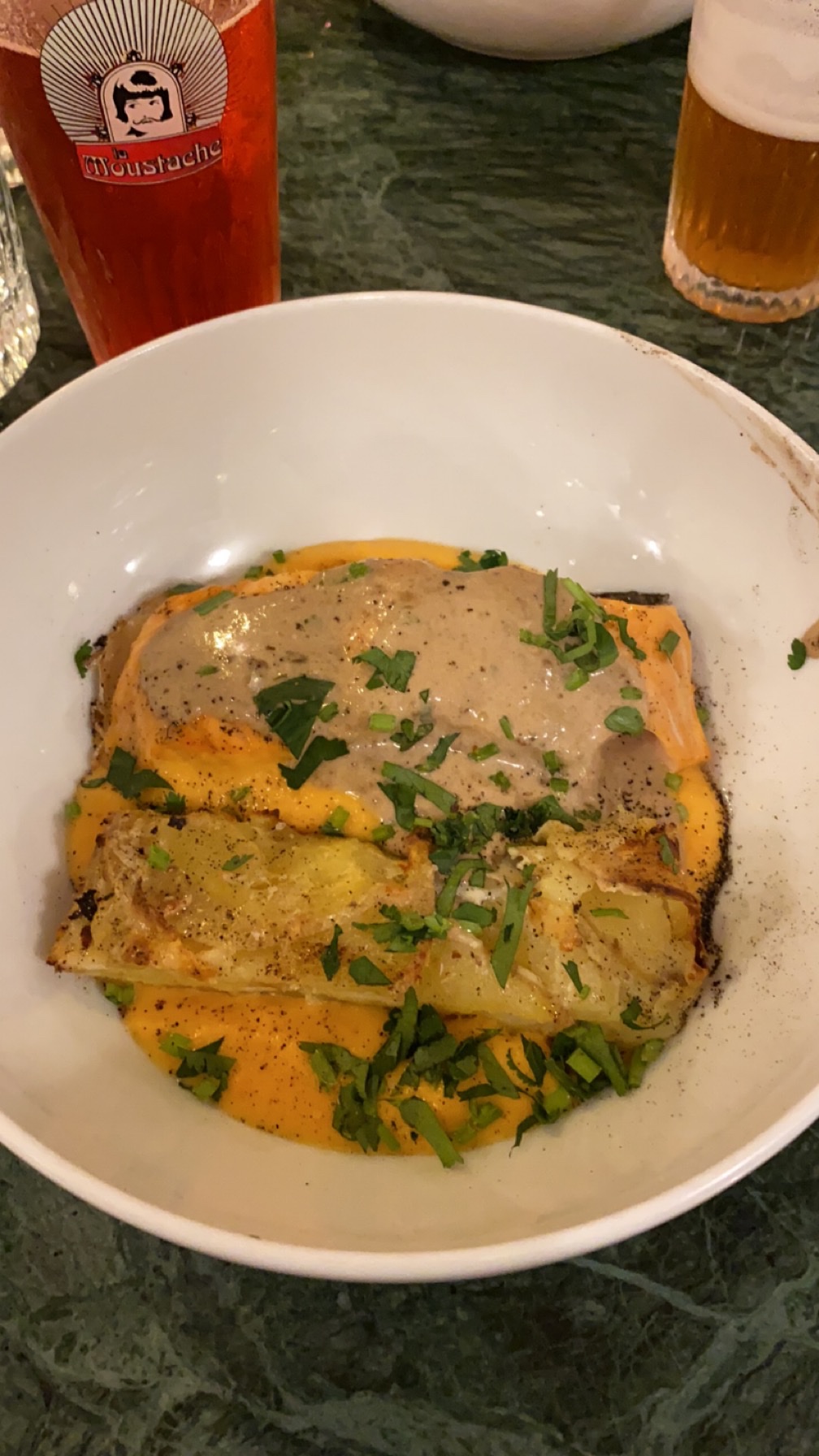Le lieu est beau (cette déco !), chaleureux et parfait pour un dîner de groupe qui fut très agréable. J'avais une petite faim, j'ai opté pour une entrée (en photo) qui était absolument délicieuse puis j'ai craqué sur un dessert qui était tout aussi savoureux. Je n'ai pas testé les plats mais les autres convives les ont trouvés très bons. Rapport qualité prix très bon. Allez-y !