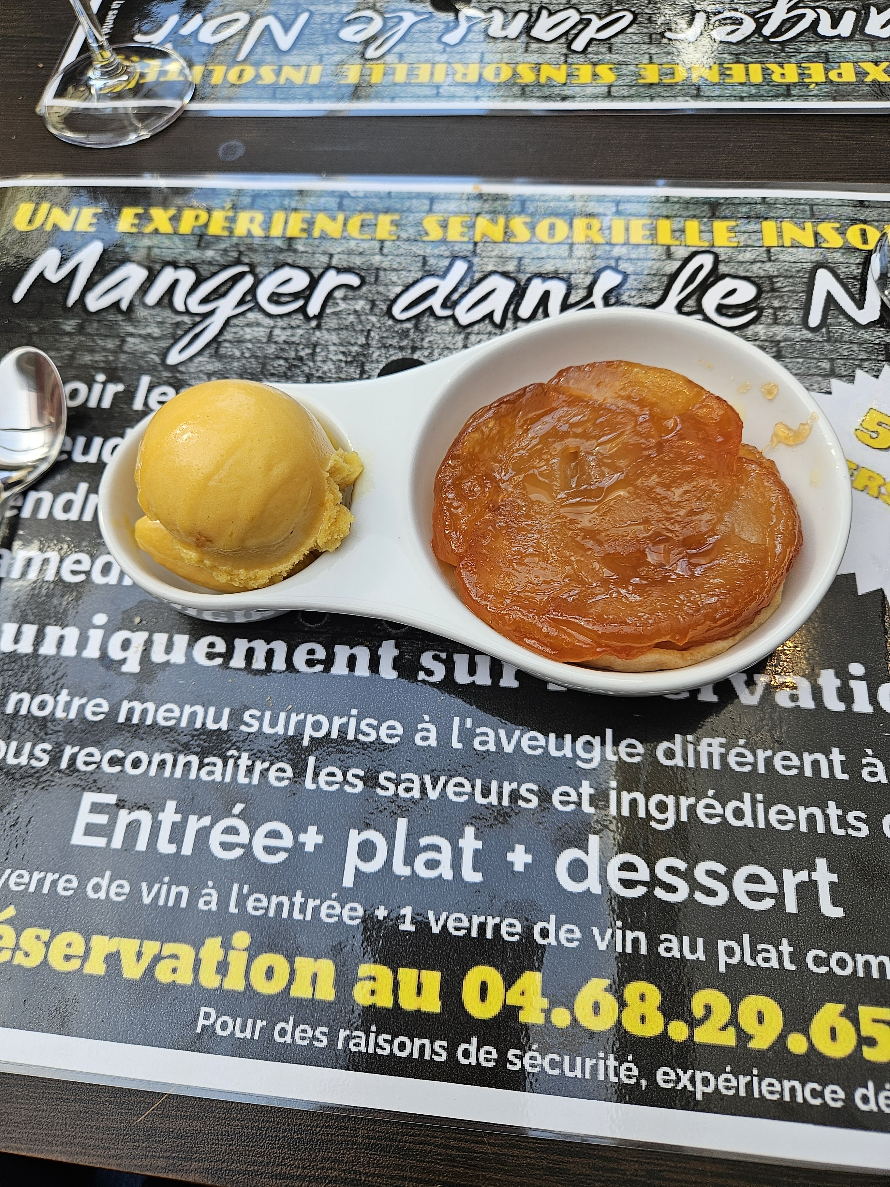 Avec mon mari nous avons tenté l’expérience « manger dans la noir » c’était juste génial une super expérience ! Le repas était excellent on a super bien mangé, menu travaillé ! On y retournera c’est sur !
