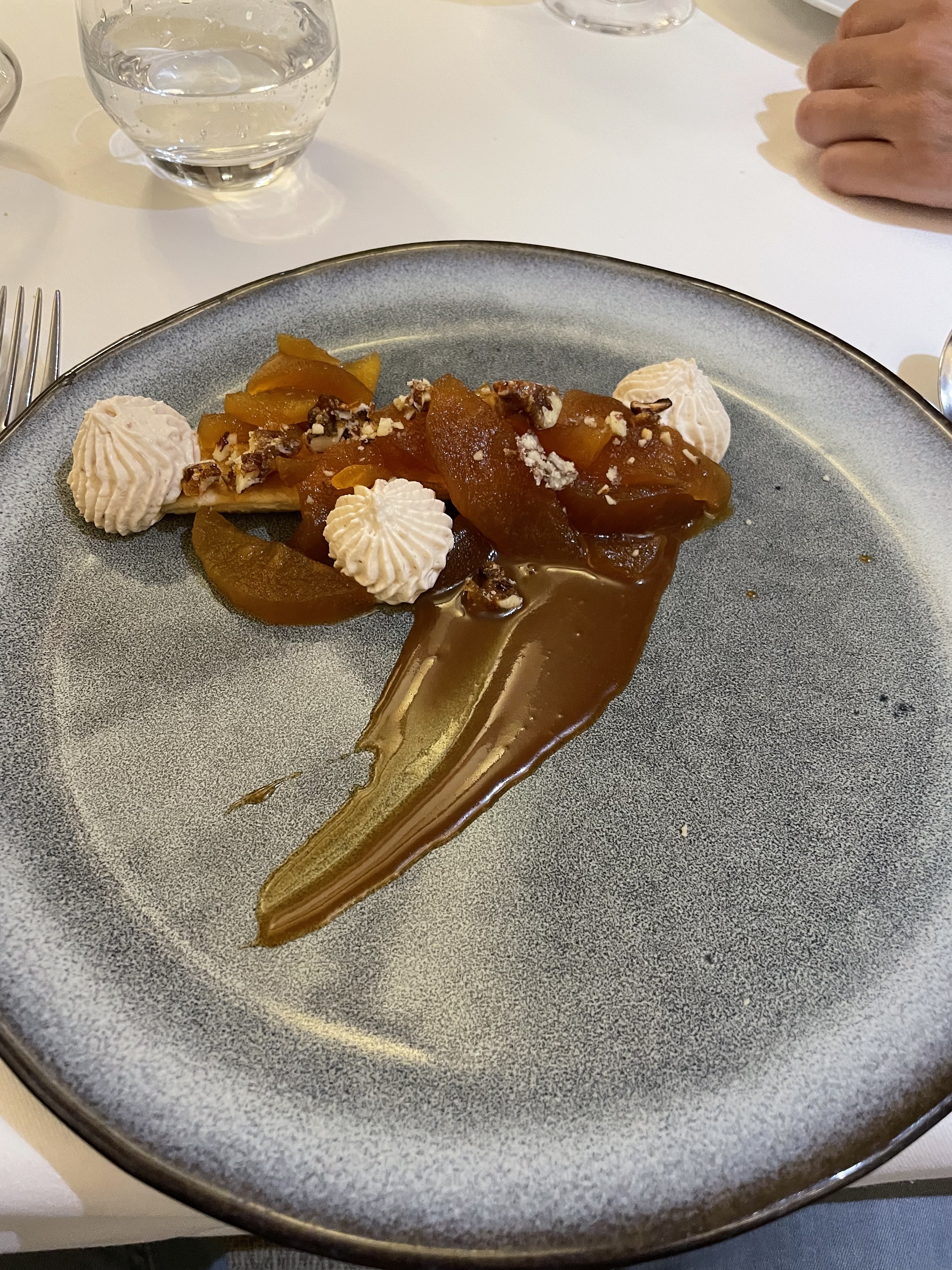 Mise en bouche, plat, dessert rien à dire très bon déçus par l'entrée (salade de couteaux) il restait du sable dans les coquillages et pas très goûtu quel dommage!