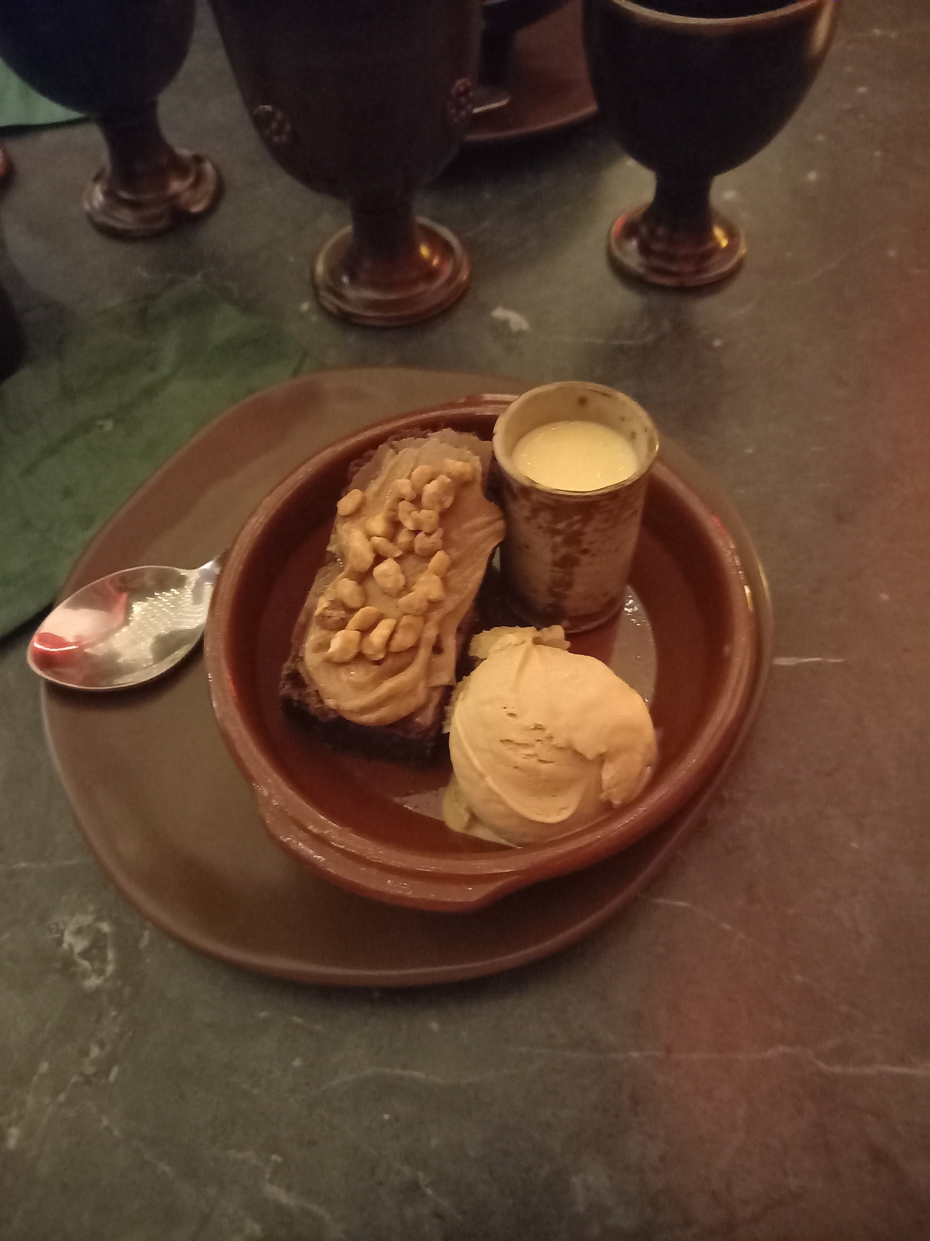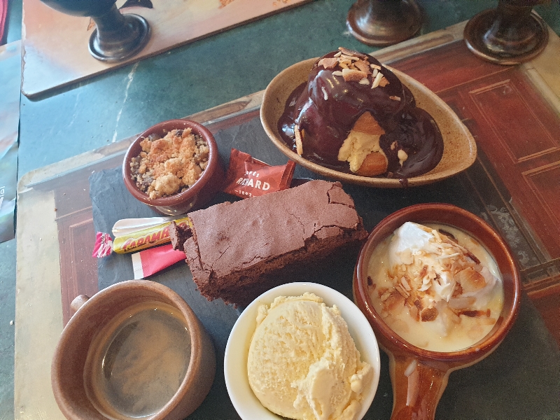 Très belle ambiance et plats intéressants. Dommage que le dessert Excalibur ne présente pas une pique en plastique... Un tout petit peu plus d'effets visuels et ce serait parfait 👍