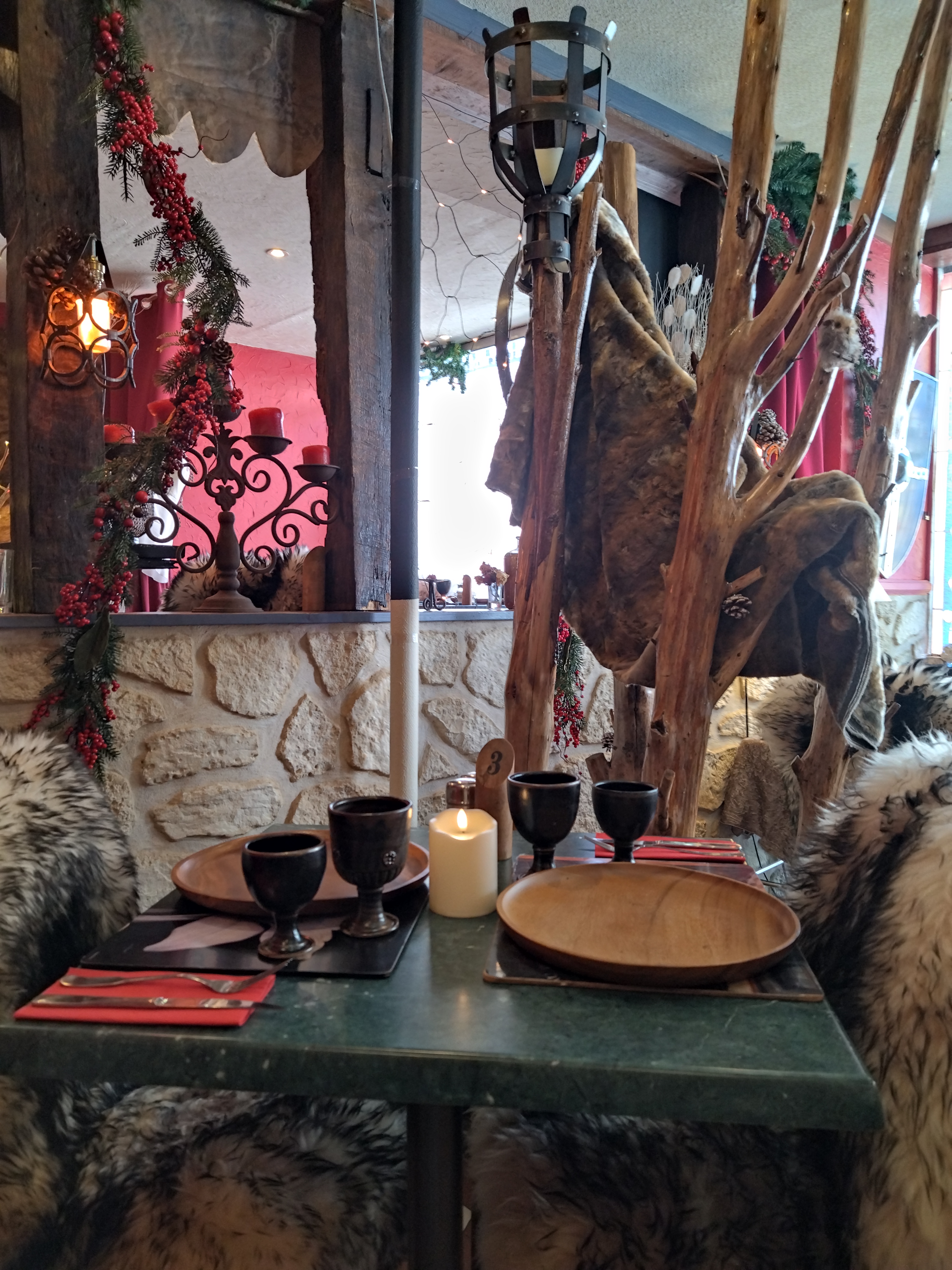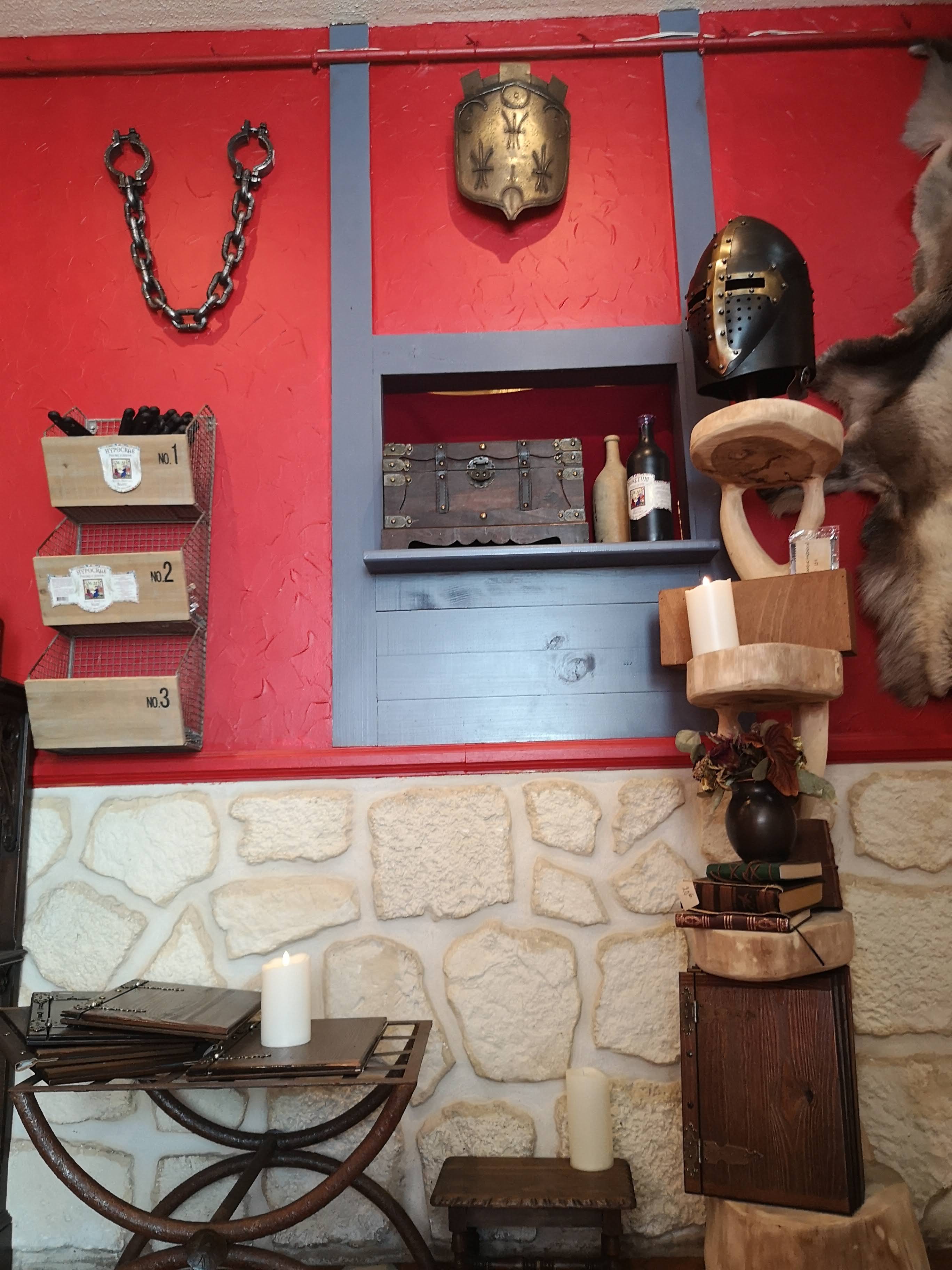 SUPER RESTAURANT !!! Décor créé avec Beaucoup de goût, dès l'entrée dans le restaurant le décor nous immisce dans un cadre médiévale, part de nombreux objets de décoration style médiéval. Des casques de chevalier, des peaux de bête au mure, de nombreuses bougie et autre bizarrerie tout sa condensé dans ce lieux aussi jolie soit t'il nous transporte ! Félicitations au gérant et a sa femme !