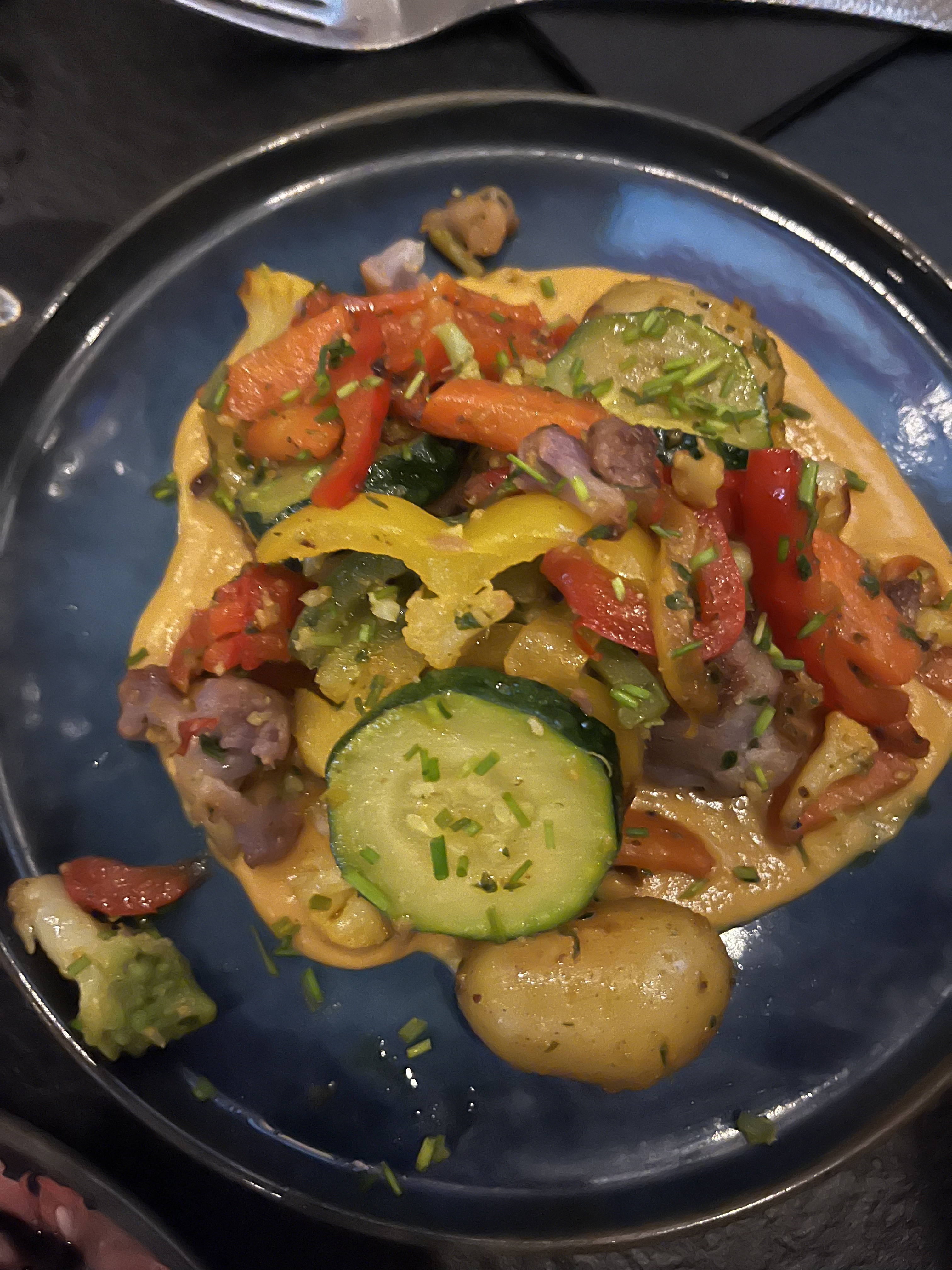 Burrata au pesto et gratin dauphinois très bons, par contre risotto aux langoustines hyper fade sans saveur donc avis mitigé au vu des prix…