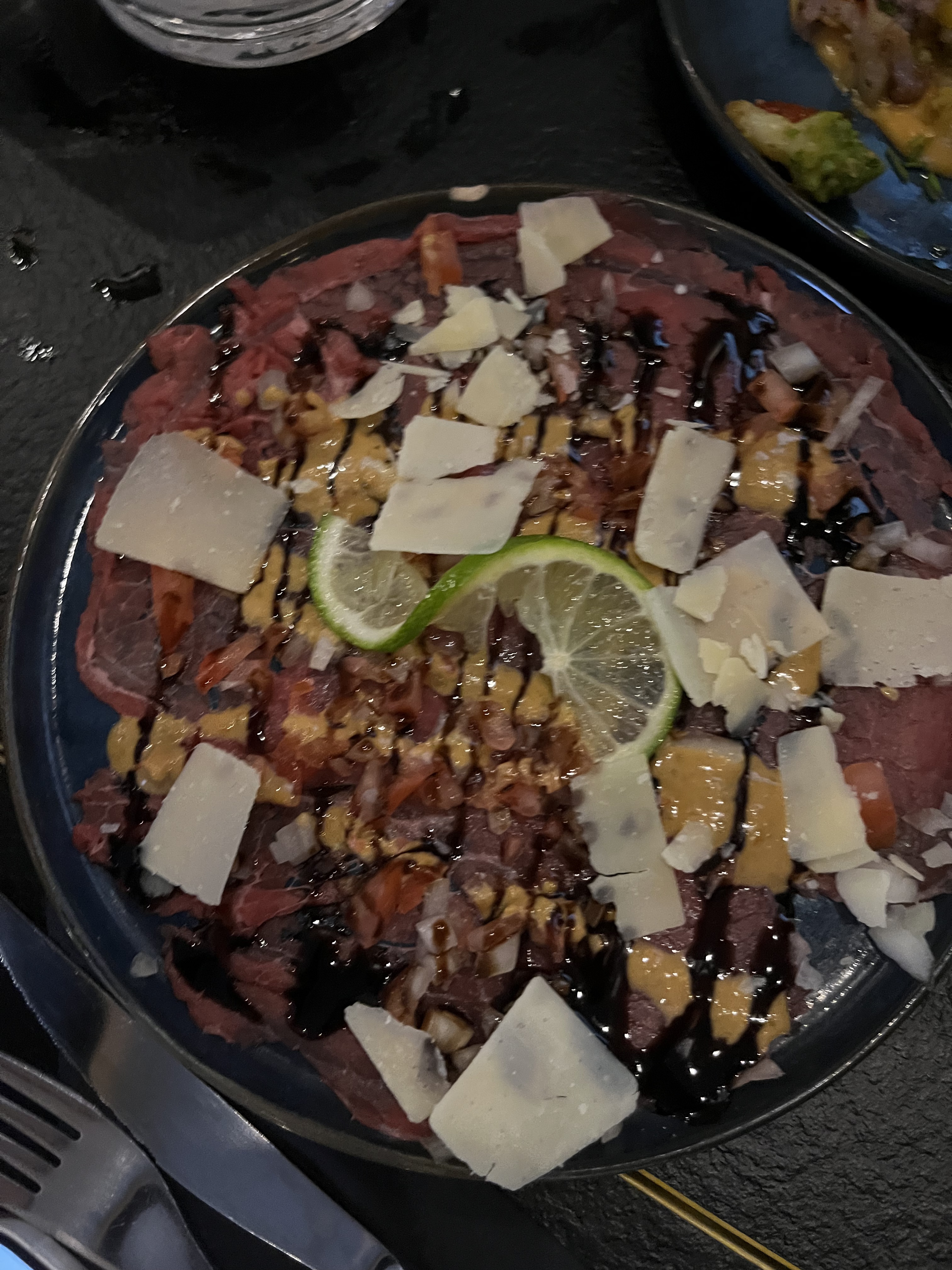 Accueil passable.. Service Rapide par contre les entrées + plat sont servis en même temps. Moi sa ne m’a pas dérangé pour autant mais peut être que pour d’autre sa peu être différent. Endroit propre bien décoré, ambiance top, musique pas trop forte. Les assiettes ne valent pas leurs prix.. les quantités sont restreintes on ne se sent pas calé en sortant du restaurant ce que je trouve fort dommage ! La carte n’ai pas à jours sur Internet, Instagram .. ce serais bien de mettre à Jour les plats que vous propose réellement quand on voit les plats alléchants. Et quand on arrive c’est tout autres ( présentation, quantité ). Ou plat visible sur internet mais inexistant au resto. Quand on se fait une idée de ce qu’on va manger et qu’on le vois pas sur la carte actuelle sa peu être décevant. Le Carpaccio ( épais et sa manque vraiment de goût. On a l’impression de manger que de la viande cru sans avoir de goût ). Pour avoir manger du carpaccio dans plusieurs restaurants la quantité chez vous n’étais pas également au rdv pour le prix. ( et l’assiette vu sur internet ) je tiens vraiment à le souligner car les photos et le réel c’est trompeur et c’est dommage. L’entrecôte ( maigre + de graisse que de viande). Les raviolis étaient bonne.. A revoir quand même pour les quantités