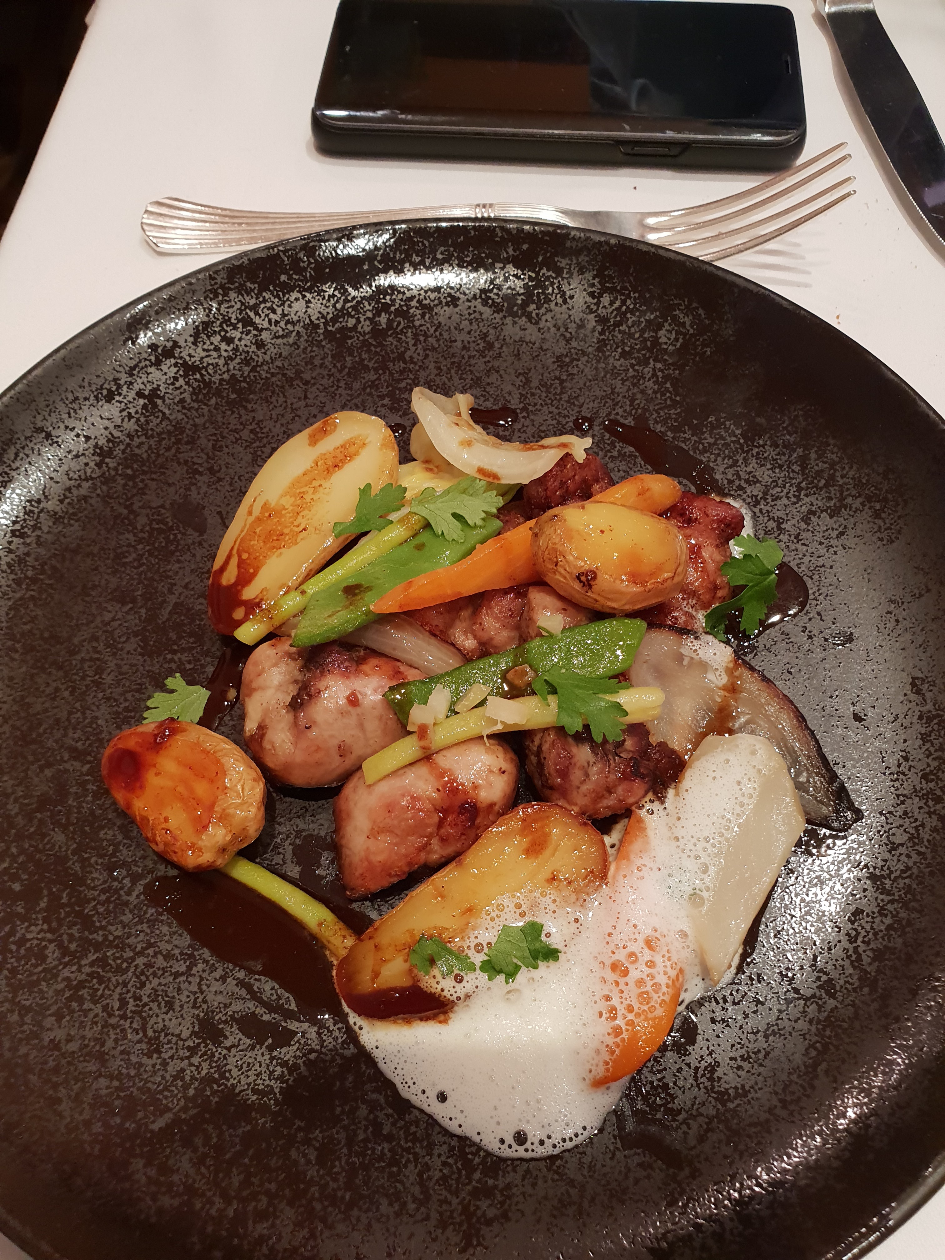 Le top ! Aucune critique ne me vient à l'esprit. Tout est parfait dans ce petit restaurant à l'ambiance intime : le lieu, la déco, la table soignée jusque dans ses moindres détails, l'accueil, le service sympathique...et la cuisine. Quel bonheur, quelle finesse dans les saveurs, quel travail dans la présentation avec ce goût inimitable qui vous reste en bouche et dont vous vous délectez ; le tout ponctué par un vin fabuleux, cerise sur le gâteau s'il en était besoin ! Amateurs de bonnes choses ne vous en privez pas. C'est un régal pour les yeux et pour le palais. Pour ma part, j'ai doré.