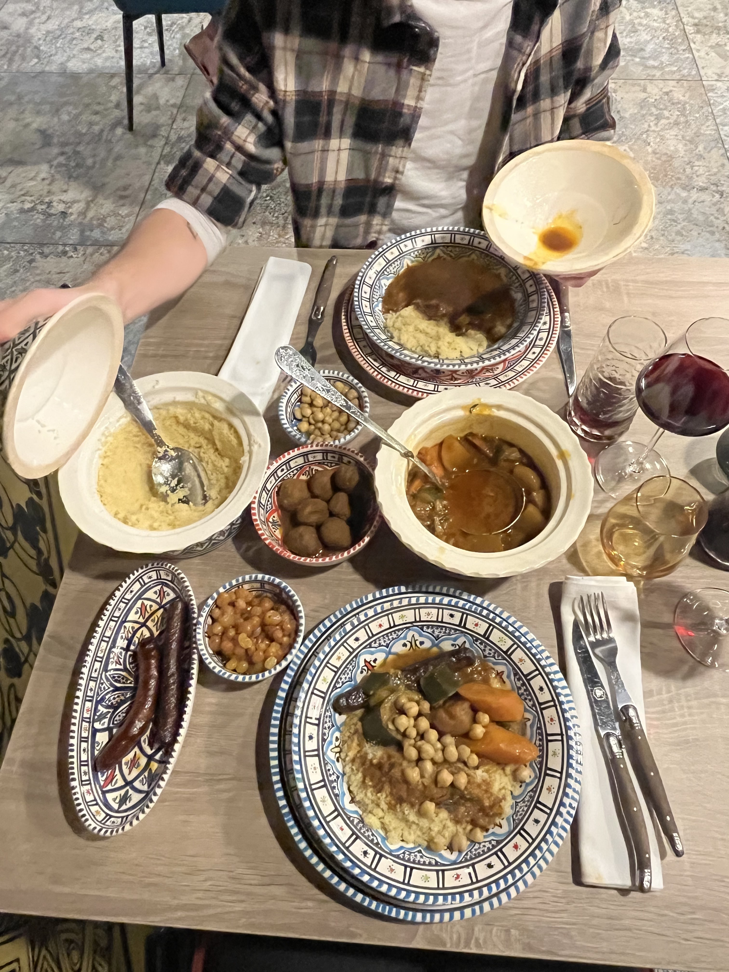 Pour nous c’était une première, Mon mari et moi même avons dîner et là, Les saveurs gustatives étaient bien présentes et nous nous sommes régalés . Le tajines boulettes de bœuf et le couscous aux bœuf et merguez !!!!! Les serveuses souriantes et accueillantes c’est un plaisir