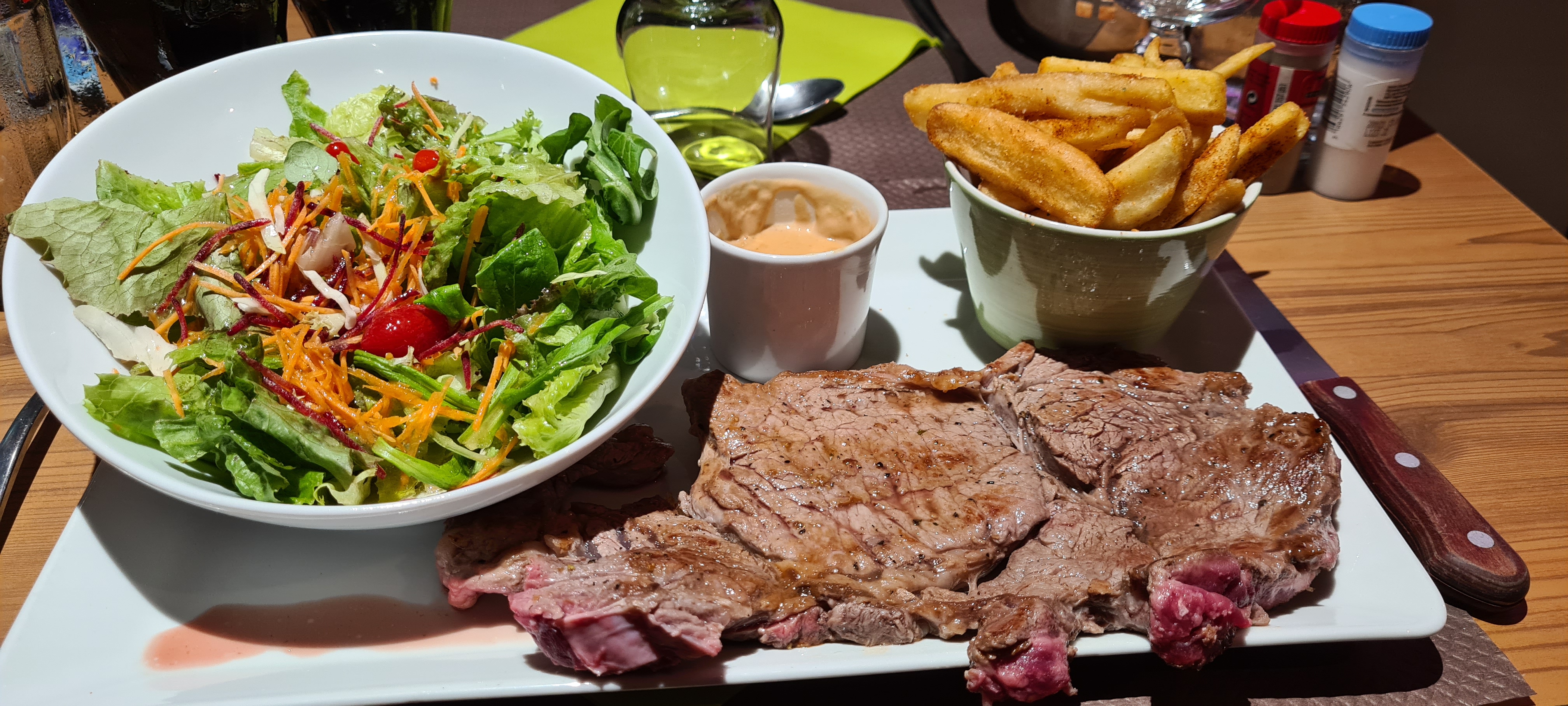 Endroit sympathique, service rapide et efficace. Nous avons bien déjeuner, la viande était cuite comme nous l'aimons, (bleue). Les accompagnements originaux et bons. Merci